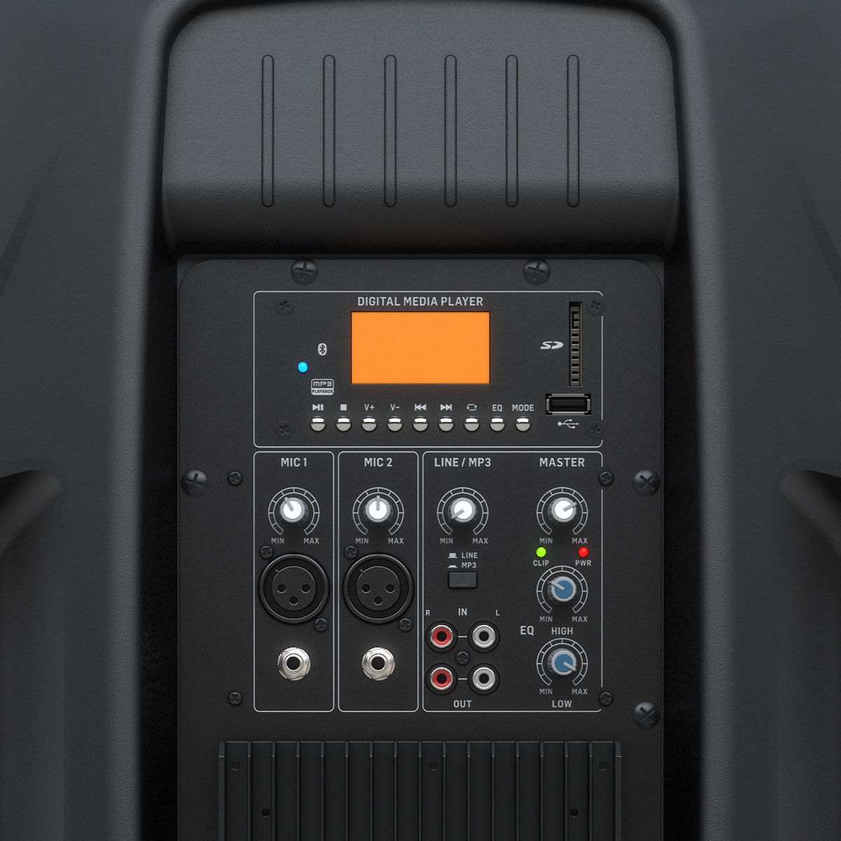 El PK115A es un altavoz de refuerzo de sonido de 800W de 2 vías súper compacto con reproductor multimedia integrado y bluetooth, es ideal para aplicaciones de sonido en vivo, PA portátil, karaoke, monitor de cuña, casas de culto y mucho más. Esta solución de PA increíblemente autónoma que combina la tecnología de amplificador de potencia Clase AB de 800W con una mezcladora integrada de 2 canales y un canal de micrófono independiente, bluetooth incorporado, un reproductor mp3 de alto rendimiento con ranuras para SD / USB / MMC y una portabilidad excepcional. Una conveniente salida Power Line te permite conectar varios altavoces pasivos PK115 mientras que la conectividad Bluetooth de enlace rápido permite una reproducción estéreo real con otros PK112A y PK115A. Sabemos que tu música vive en tu teléfono, computadora o tablet, por lo que facilitamos el acceso y la reproducción a través del PK115A. Con un simple deslizamiento de tu dedo puedes transmitir instantáneamente toda tu música favorita desde cualquier dispositivo equipado con bluetooth, como tu computadora, smartphone o tablet. La transmisión de música a través de la tecnología bluetooth abre una enorme cantidad de contenido disponible, como una variedad prácticamente ilimitada de canales de radio en línea, proveedores de multimedia y mucho más. Simplemente presionando el botón de vinculación del PK115A, se vinculará rápidamente con otro PK112A o PK115A con verdadero estéreo inalámbrico. Imagina que tienes todo el sistema PA a tu alcance, controla la fiesta desde la pista de baile o la música de fondo cómodamente desde tu silla. Simple, fácil y sorprendente. El asombroso PK115A cuenta con mezcladoras de 2 canales incorporadas con los mismos preamplificadores de micrófono de ruido ultra bajo y alto margen que han hecho que nuestras mezcladoras sean legendarias. También se incluye un ecualizador de 2 bandas, además de bluetooth para transmitir audio directamente desde tu dispositivo y las entradas individuales de micrófono y línea aceptan prácticamente cualquier nivel de señal con la que probablemente se encuentre. Los controles de ganancia de entrada variable (con LED de clip) te permitirán marcar el nivel perfecto en todo momento. La interfaz de usuario simple e intuitiva consta de un control de nivel dedicado por canal, un volumen master y controles separados de agudos y graves. Una de las características más interesantes del sistema PK112A es su reproductor mp3 integrado. Simplemente conecta tu lista de reproducción favorita (por medio de una memoria (USB, SD, MMC) y usa el teclado de 6 botones con Mode, Play/Pause, Random, Rewind, Forward y vínculo rápido de Bluetooth. Desde música de fondo y de descanso hasta pistas de karaoke de alta resolución, este reproductor de mp3 puede manejarlo todo. Todos los reproductores mp3 de la serie PK vienen con control remoto incluido con hasta 10 metros de libertad inalámbrica. Nuestros transductores LF y HF están diseñados específicamente para cada aplicación, es lo que nos diferencia de la competencia. Cuando compras un altavoz Behringer, puedes estar seguro de que los transductores del interior han sido diseñados para funcionar sin problemas junto con cualquier otro elemento para obtener resultado verdaderamente profesionales. El PK115A produce graves increíblemente profundos y potencia acústica con medios articulados y detallados y agudos excepcionales. El PK115A cuenta con un potente driver de baja frecuencia de excursión larga de 15″ pulgadas para graves potentes, un driver de compresión de 1″ pulgada montado en una bocina exponencial de gran formato de dispersión ultra amplia para una reproducción excepcional de alta frecuencia. Estos componentes de altavoz fueron diseñados específicamente para un excelente rendimiento y un sonido increíble en todo momento. El altavoz PX115A se destaca por encima del resto del grupo y ofrece un rendimiento excepcional, incluido cuando se lleva al límite. Ligero y potente con transductores de diseño personalizado, manejo de potencia masiva y portabilidad extrema, el altavoz PK115A es ideal para cualquier aplicación de música a un precio sin precedentes en esta clase.