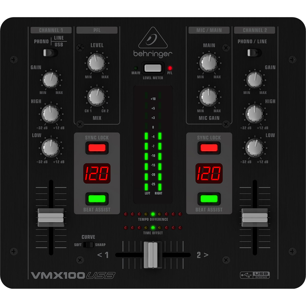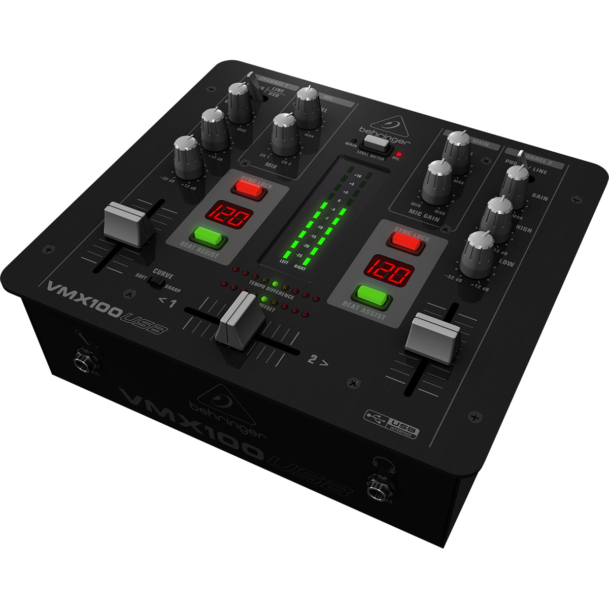 Así seas un DJ con escenas que agrega varios elementos a la mezcla o simplemente manteniéndolo sencillo, la VMX100USB preparada para USB es la mezcladora ideal para ti. Con 2 canales equipados con nuestros faders ultra-suaves ULTRAGLIDE con una vida útil de hasta 500,000 ciclos y un crossfader controlado por VCA con curva ajustable, puedes configurar la VMX100USB rápidamente para adaptarse a tu estilo personal de mezcla. Esta mezcladora fácil de usar te ofrece también un EQ individual de 2 bandas (-32 dB) y controles de ganancia por canal además de un medidor de nivel LED para la salida principal. A todo esto se suma el máximo en comodidad y fiabilidad y un buen rendimiento de audio durante muchos años.