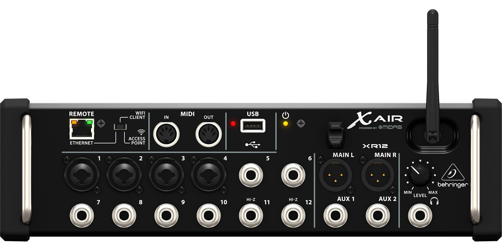 La revolucionaria XR12 es una poderosa mezcladora portable de rack para iPad y tabletas con Android, de 12 entradas y es ideal para aplicaciones en vivo y en estudio, gracias a sus 4 galardonados preamps MIDAS para micrófono, módulo Wi-Fi integrado para control inalámbrico, conectividad USB para almacenamiento de archivos, sistema de actualizaciones y grabaciones estéreo sin compresión por medio de su grabadora USB. Hemos incluido también protecciones laterales para rack y bumpers de protección para ofrecerte una mayor flexibilidad en tus aplicaciones de estudio y escenario.