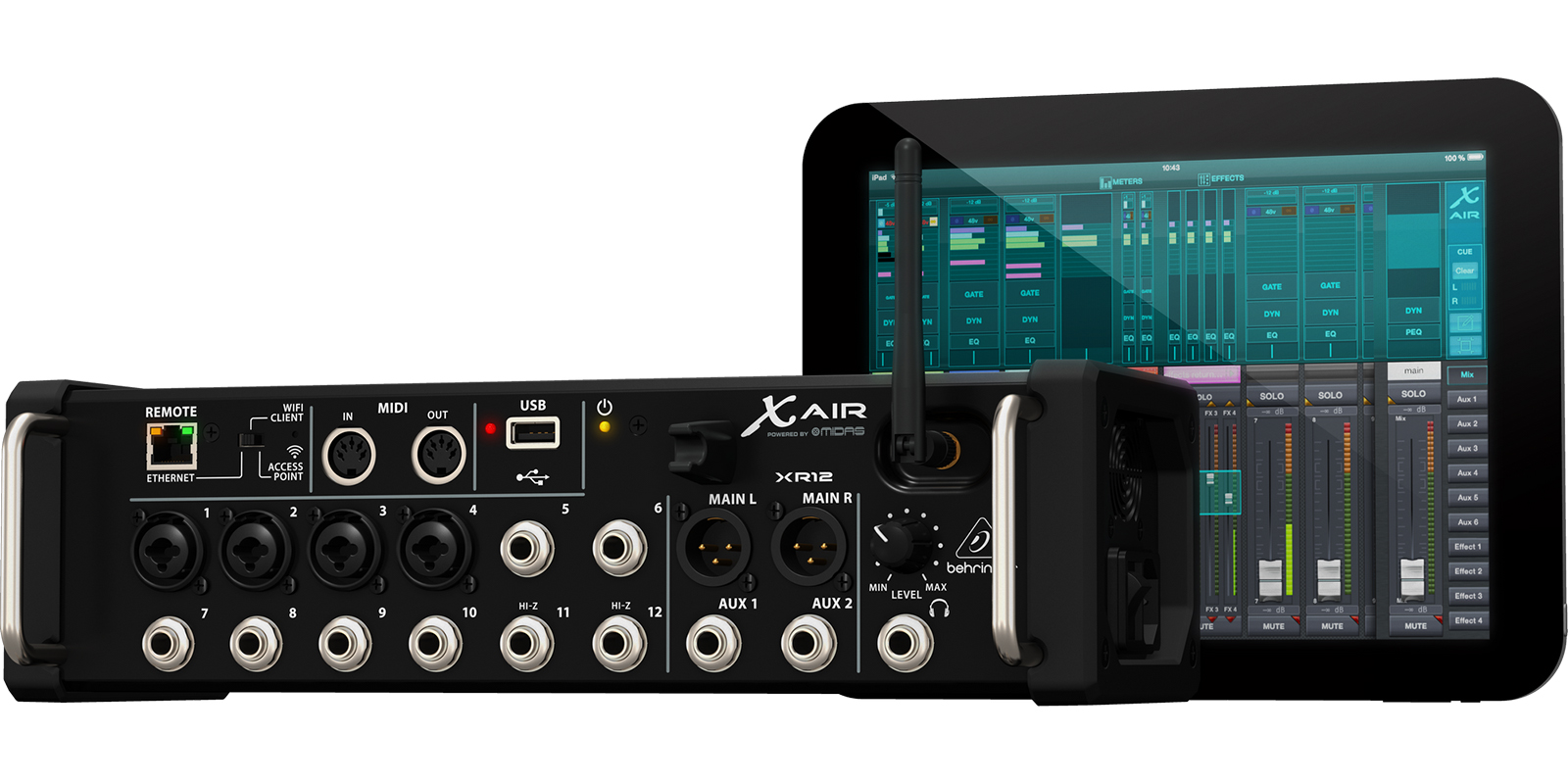 Diseñado para lo último en movilidad, la XR12 viene con un módulo Wi-Fi para el control directo de las funciones de la mezcladora sin la necesidad de instalar y configurar un ruteador externo. La XR12 le da la libertad de centrarte en tu mezcla y te permite moverte sobre el lugar para experimentar lo que estás oyendo en cada parte de la sala. Además podrás ajustar la monitorización en directo desde la perspectiva del artista, o mejor aún, dejar que ellos mezclen sus propios IEM y monitores de piso por medio de sus propias tablets.