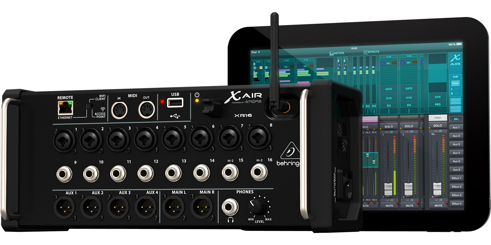 La revolucionaria XR16 es una poderosa mezcladora portable de rack para iPad y tabletas con Android, de 16 entradas y es ideal para aplicaciones en vivo y en estudio, gracias a sus 4 galardonados preamps MIDAS para micrófono, módulo Wi-Fi integrado para control inalámbrico, conectividad USB para almacenamiento de archivos, sistema de actualizaciones y grabaciones estéreo sin compresión por medio de su grabadora USB. Hemos incluido también protecciones laterales para rack y bumpers de protección para ofrecerte una mayor flexibilidad en tus aplicaciones de estudio y escenario.