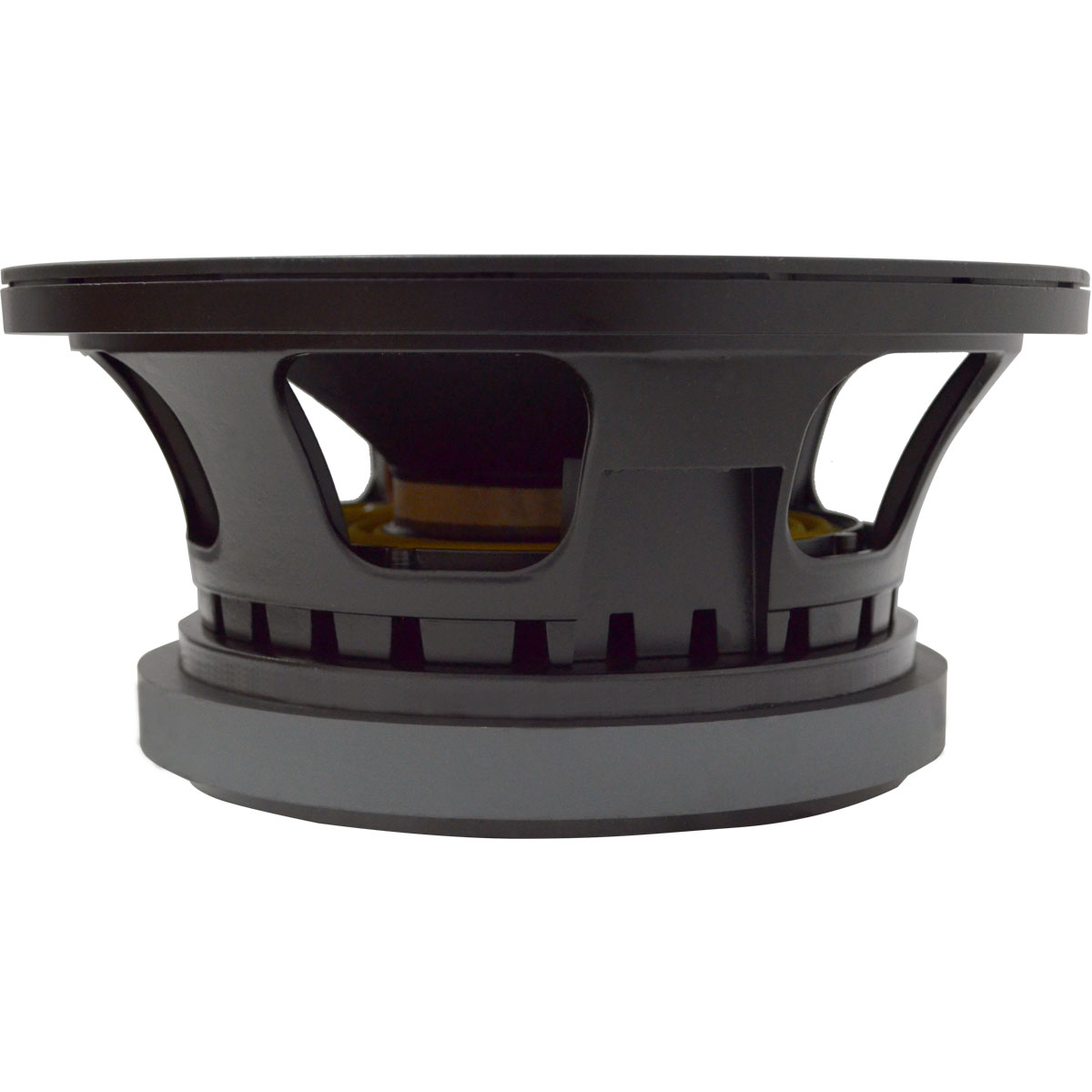 El transductor de bajos graves-medios 10MB600 de Eighteen Sound representa un desarrollo del rango medio del altavoz 10M600, que combina una excelente linealidad con una alta eficiencia y capacidades de manejo de alta potencia. El 10MB600 está destinado principalmente para uso como driver de paso medio en recintos de 2 vías extremadamente compactos entre 10 y 40 lt. Su cono de papel curvilíneo se forma con una pasta de madera especial de alta resistencia, diseñada para lograr la mejor rigidez posible. También se aplica un tratamiento exclusivo al cono para aumentar sus propiedades repelentes al agua. La bobina móvil de 75 mm es similar a la de nuestros modelos de gama alta de 18” y 15”, pero está enrollada con alambre de aluminio. La bobina también emplea nuestra tecnología de bobina móvil intercalada de intercalado (ISV). Un embobinador de fibra de vidrio de alta resistencia transporta bobinas en las superficies externa e interna para lograr una bobina de masa balanceada, lo que resulta en un ensamble de motor extremadamente lineal con una tendencia reducida para el comportamiento excéntrico cuando se maneja con fuerza. El enfriamiento de la bobina de voz se logra utilizando vías aéreas entre la placa posterior del chasis y la placa frontal del imán, que permiten que el aire caliente de la bobina móvil y la brecha se canalicen y se disipen mediante la canasta del chasis. Esta tecnología es el resultado de la aplicación de recursos de CAD en 3D de nuestros ingenieros. Las placas superior y posterior del conjunto del imán se han diseñado para optimizar la densidad de flujo y el factor BL en el espacio de aire, también utilizando nuestra instalación interna de FEA CAD. Además, se aplica un tratamiento especial a las placas superior y posterior, lo que hace que el transductor sea mucho más resistente a los efectos corrosivos de las sales y la oxidación. Por lo tanto, el equipo puede funcionar al aire libre en condiciones climáticas adversas.