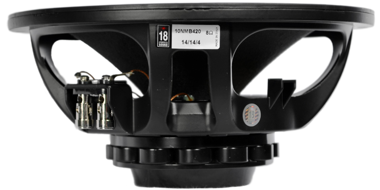 El transductor de neodimio 10NMB420 se ha desarrollado en respuesta a un requisito específico del mercado para un controlador de paso medio de 10 “que combina una excelente linealidad con una buena eficiencia y capacidades de manejo de alta potencia. El 10NMB420 está destinado principalmente para su uso como controlador grave medio en arreglos lineales, así como en recintos reflex de 2 vías o multi vía de alta calidad. El filtro de paso bajo podría colocarse tan alto como 2,000 Hz. El extremadamente poderoso imán de neodimio externo asegura una alta concentración de flujo, baja compresión de energía y un excelente intercambio de calor. Los niveles de factor de fuerza y manejo de potencia están, como consecuencia, en el nivel profesional superior con la mejor relación potencia/peso. La bobina móvil de aluminio con tecnología de punta de 65 mm de diámetro emplea la tecnología de bobina de voz intercalada (ISV). Está compuesto por un embobinador de fibra de vidrio de alta resistencia que se utiliza para transportar devanados tanto en la superficie exterior como en la interna, para lograr una bobina de masa equilibrada. Esto da como resultado un conjunto de motor extremadamente lineal que, junto con el diseño altamente avanzado de la estructura magnética, proporciona un alto factor de fuerza BL. La bobina móvil se enfría a través de las vías respiratorias colocadas entre la placa posterior del chasis y la placa frontal del imán. De esta manera, el aire caliente se canaliza lejos de la bobina móvil y la brecha. Otra tecnología presente en el 10NMB420 es el SDR (Single Demodulating Ring), que se utiliza para reproducir el pico instantáneo en las frecuencias medias, reduciendo la distorsión por intermodulación. Gracias al uso cada vez mayor durante eventos de audio al aire libre, la capacidad de funcionar en ambientes húmedos es una característica clave adicional del 10NMB420. Esto se logra a través de un tratamiento de cono desarrollado exclusivamente que repele la humedad del cono y no aumenta la masa total del altavoz en movimiento.
