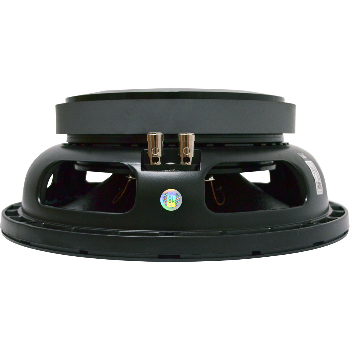 El 12MB1000 es un driver midbass de 12” pulgadas de muy alto rendimiento. Ofrece una capacidad de manejo de alta potencia con una sensibilidad excepcional en el rango de frecuencias midbass. Se puede usar con aplicaciones de radiación directa u horn loaded, así como parte de un sistema de 2 o 3 vías. Se utiliza idealmente en monitores de escenario, auditorios, sistemas de giras y exteriores. El cono de papel curvilíneo suave tiene una composición especial de pasta de madera de alta resistencia diseñada para lograr la mejor linealidad posible dentro del rango de frecuencia media y para controlar las resonancias en modo campana alrededor del cono. El cono se transporta mediante una doble suspensión de medio rodillo, que es más resistente al envejecimiento y la fatiga que los materiales tradicionales y proporciona el control correcto de amortiguación y desplazamiento. La bobina móvil de vanguardia emplea nuestra tecnología de bobina móvil intercalada (ISV, por sus siglas en inglés), en la que un embobinador de fibra de vidrio de alta resistencia transporta bobinas tanto en la superficie exterior como en la interna. Por medio de una bobina equilibrada con una distribución uniforme de masa y energía motriz, esta tecnología asegura un conjunto de motor extremadamente lineal. El enfriamiento de la bobina móvil se ha logrado mediante la incorporación de vías de aire entre la placa posterior del chasis y la placa superior del imán que permiten que el aire caliente de la bobina de voz y la brecha se canalicen y se disipen por la canasta del chasis. Esta tecnología es el resultado de un meticuloso ejercicio de diseño que utiliza una sofisticada instalación interna de CAD en 3D. La estructura magnética también se ha optimizado utilizando nuestro recurso interno FEA CAD para maximizar la densidad de flujo en la brecha de la bobina móvil. Eighteen Sound R&D ha desarrollado un tratamiento especial para conos específicamente dedicado a mejorar las propiedades de amortiguación del conjunto móvil, mejorando así considerablemente el control de respuesta transitoria. Este tratamiento también le otorga al cono propiedades repelentes al agua, lo que permite que el 12MB1000 se use en ambientes húmedos sin daños.