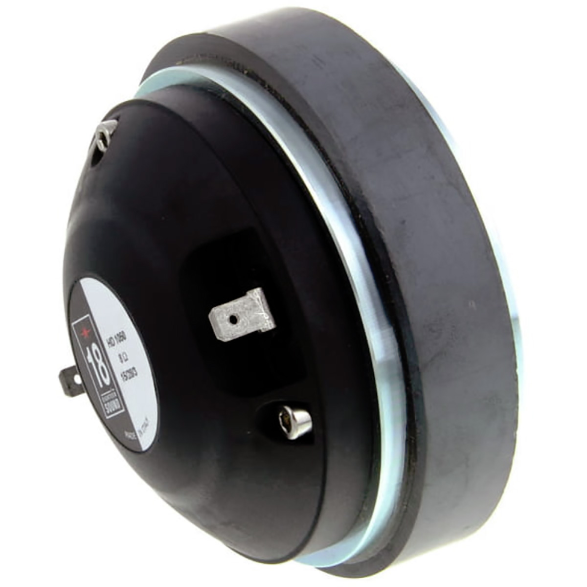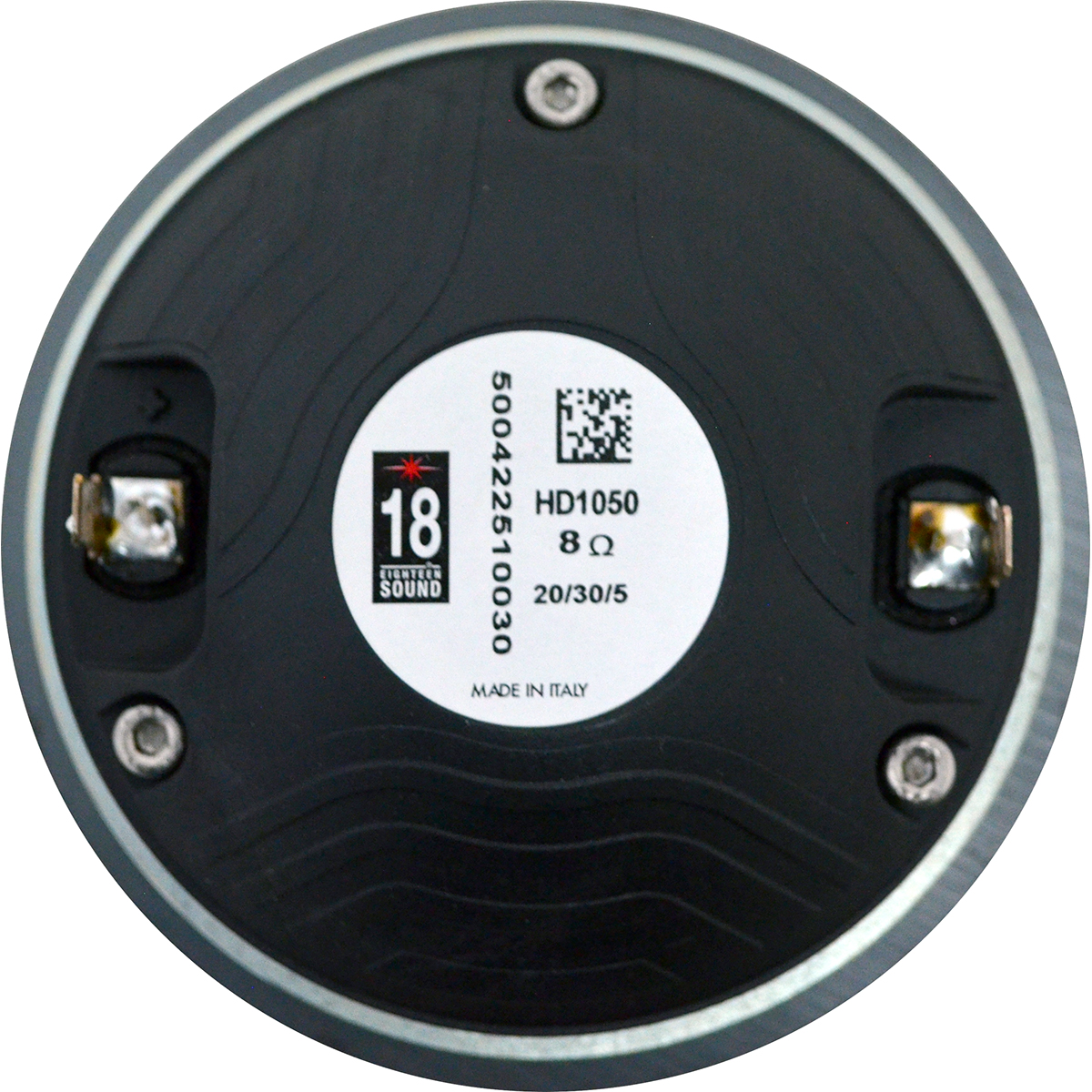 El driver de compresión de alta frecuencia HD1050 de salida de 1″ pulgada, fue diseñado para su uso en sistemas de audio de alta calidad. Equipado con la arquitectura patentada Phase Plug de Eighteen Sound, el HD1050 ha sido diseñado para brindar una consistencia de fabricación de alto nivel y un frente de onda coherente suave en la entrada de la bocina en todo el rango de frecuencia de trabajo. Phase Plug con sus aberturas cortas y su alto valor de tasa de destellos, asegura una baja distorsión y demuestra mejoras notables en la reproducción de frecuencias medias altas. El conjunto del diafragma está compuesto por una cúpula de titanio emparedada a una unidad de suspensión de poliéster tratada patentada. Ha sido diseñado para mantener una baja resonancia, reduciendo el valor del punto mínimo de crossover a 1.4 kHz. Una bobina móvil de aluminio de borde enrollado con embobinador Nomex patentado, tiene un valor 30% más alto de alargamiento por tracción a una temperatura operativa de trabajo (200°C) en comparación con Kapton. Esta característica permite un control adecuado de la transferencia de energía desde la bobina móvil al domo en condiciones reales de trabajo. Además, este material embobinador patentado, también es adecuado para su uso en entornos con mayor contenido de humedad. El potente conjunto de imán cerámico HD1050 ha sido diseñado para obtener 16 KGauss en el entrehierro y dentro de una estructura compacta de motor de ferrita.