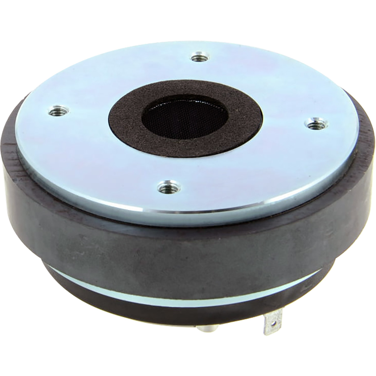 Driver de ferrita para altas frecuencias, garganta de 1″ pulgada (25.4 mm), impedancia: 8 ohms, potencia AES: 50W por encima de los 1.6 kHz, potencia programa: 100W por encima de los 1.6 kHz, sensibilidad: 107 dB, rango de frecuencia: 1,600 Hz – 20 kHz, diafragma de Titanio – PEN, bobina de aluminio de 1¾” pulgadas (44.4 mm), diseño patentado de plug de fase, peso: 1.8 kg.