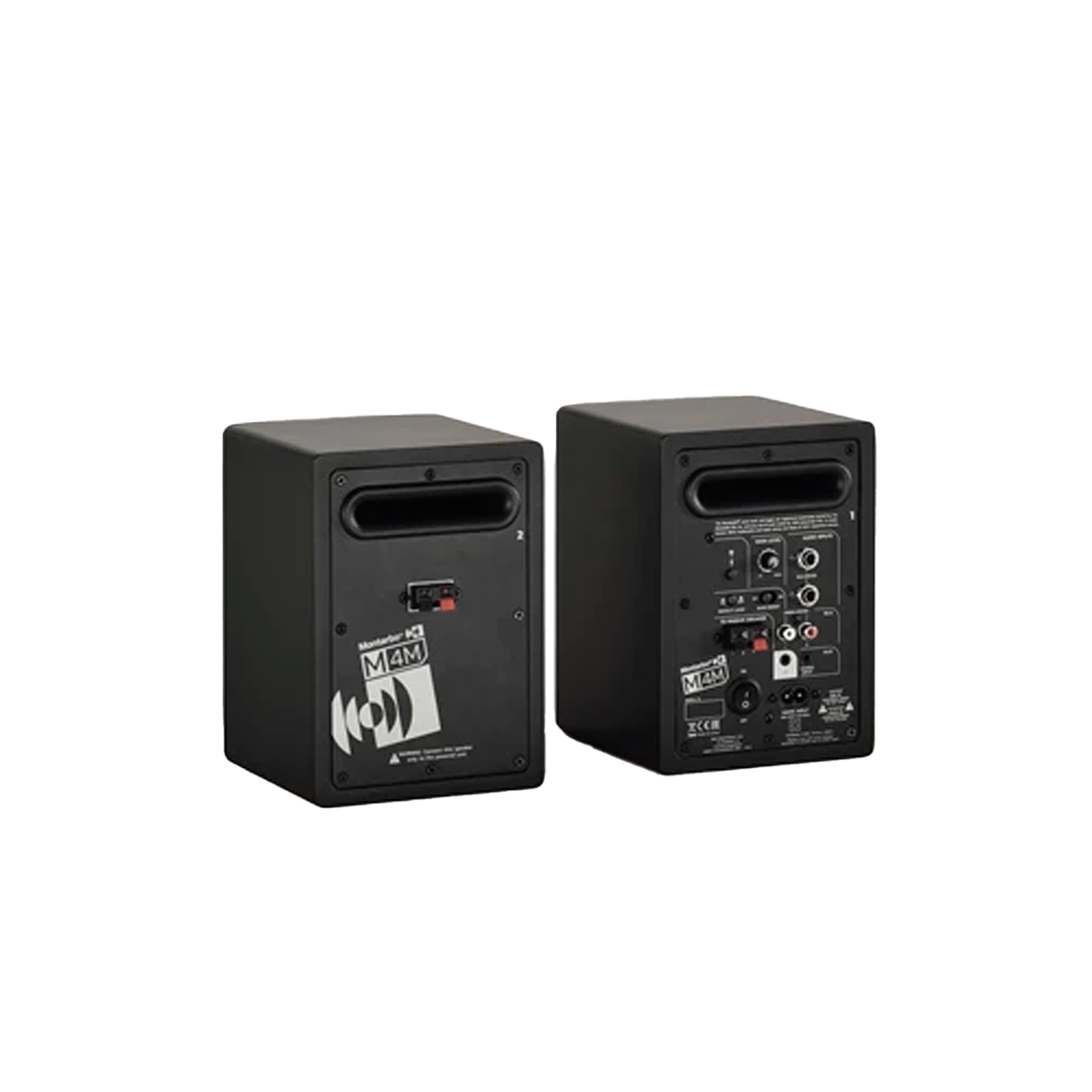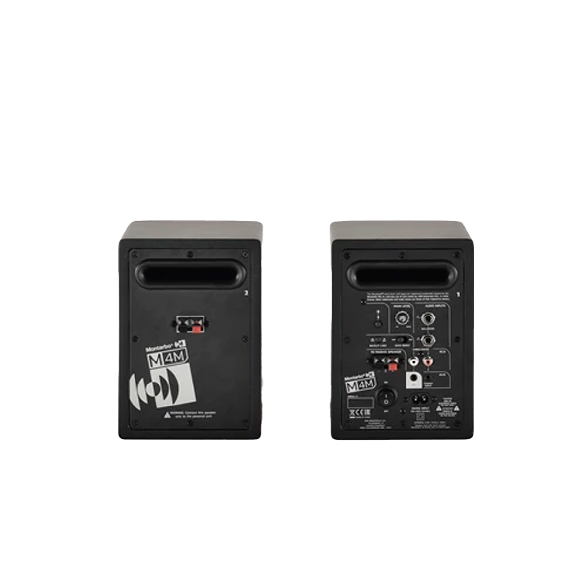 M4M es un sistema de monitor multimedia Bluetooth diseñado para su uso por par, en el que un módulo está equipado con amplificador, entradas y controles, y suministra alimentación y señal de audio al segundo módulo pasivo.