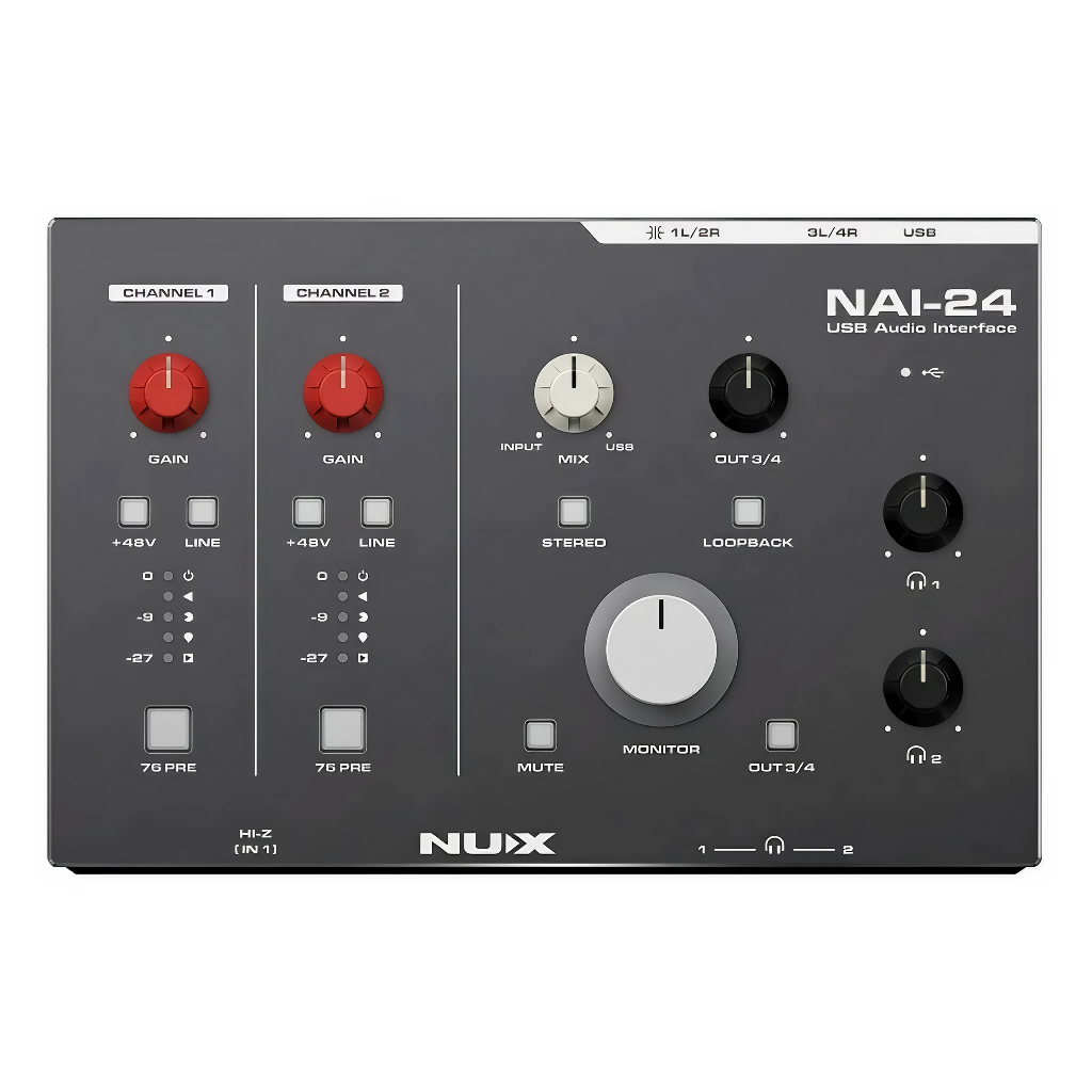 Interfaz de Audio NUX NAI-24 USB para Músicos y Productores con 2 Entradas, 4 Salidas y Alimentación Fantasma