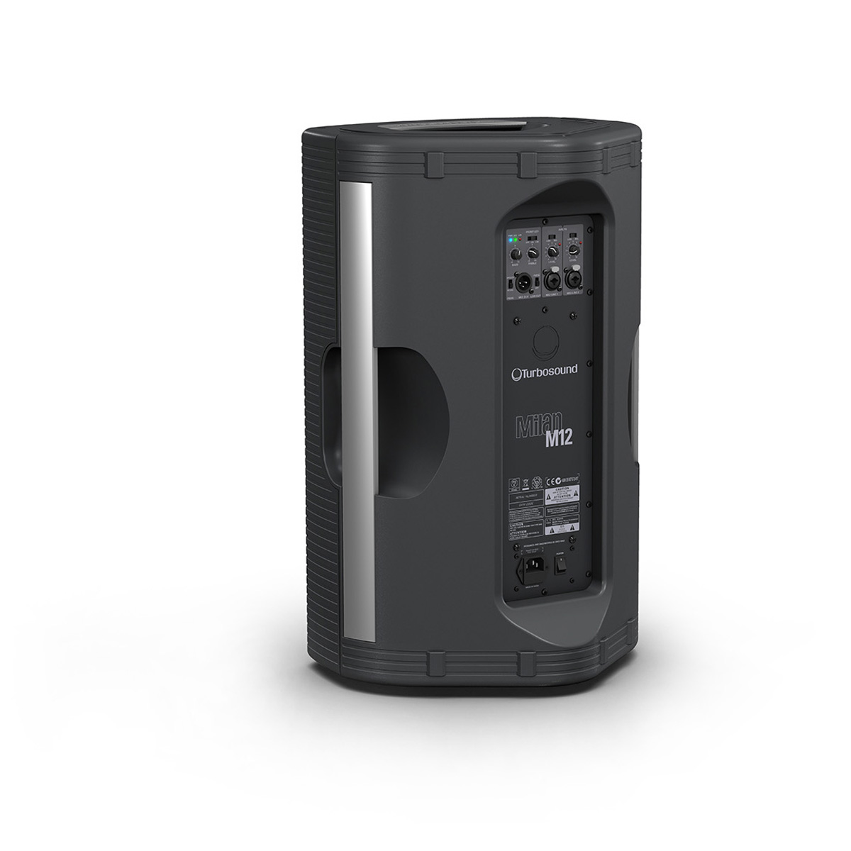 El amplificador clase D es una unidad de dos canales con un crossover electrónico integrado, permitiendo que los conductores de HF y LF puedan ser alimentados por separado sin que uno sea capaz de influir en el sonido del otro. La potencia total de salida es de 600 watts pico, lo que proporciona bastante headroom para mantener un buen rango dinámico para señales transitorias que se entregan sin esfuerzo.El Milan M12 es un bafle de 12″ pulgadas portátil activo de dos vías con dos canales independientes de entrada, micrófono y línea, dos bandas de ecualización, limitador inteligente y una función Mix Out para conectar un bafle Milan adicional para un sistema fácil de expansión.