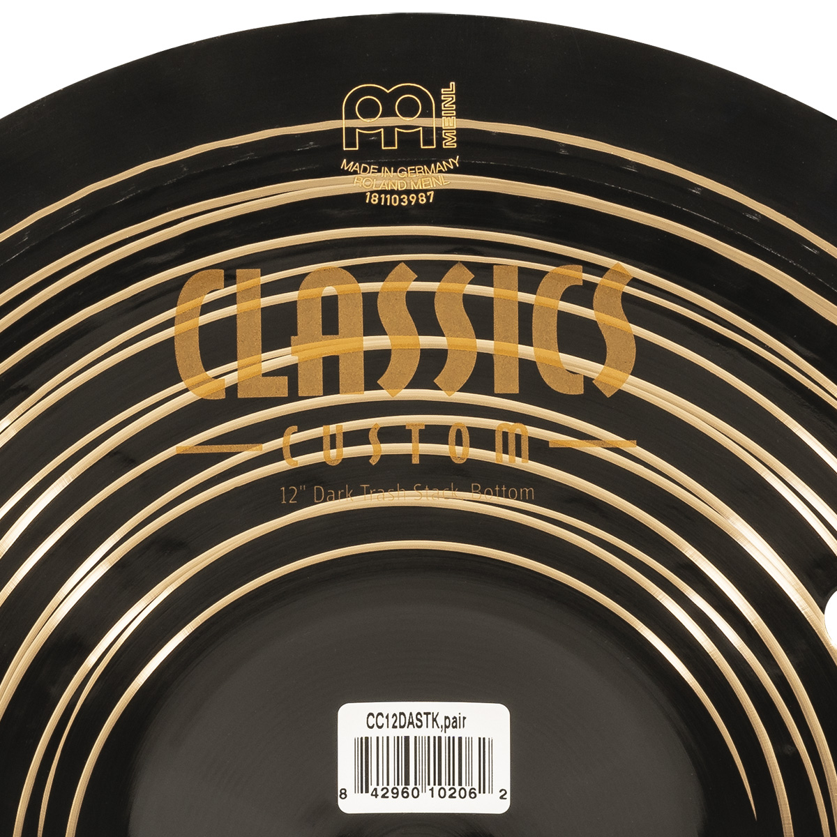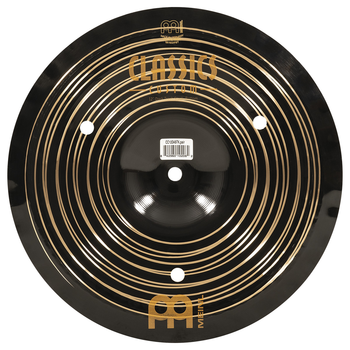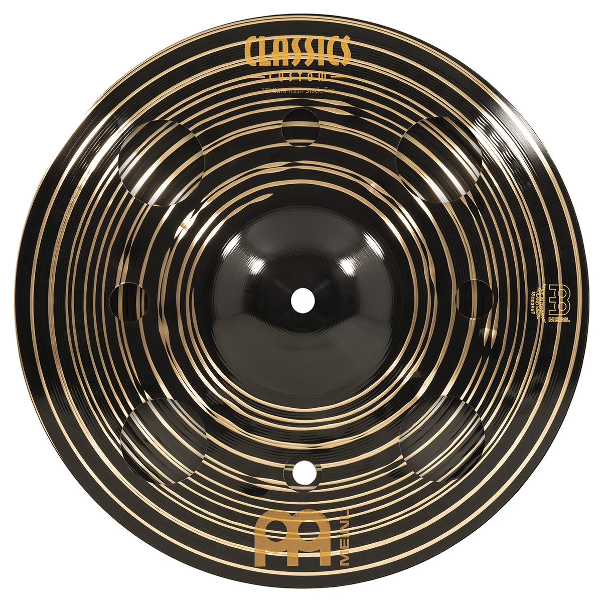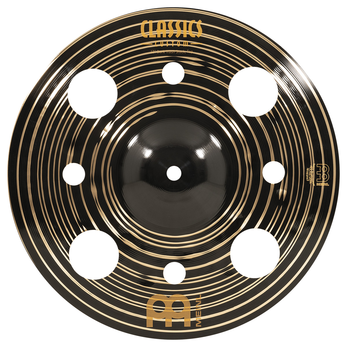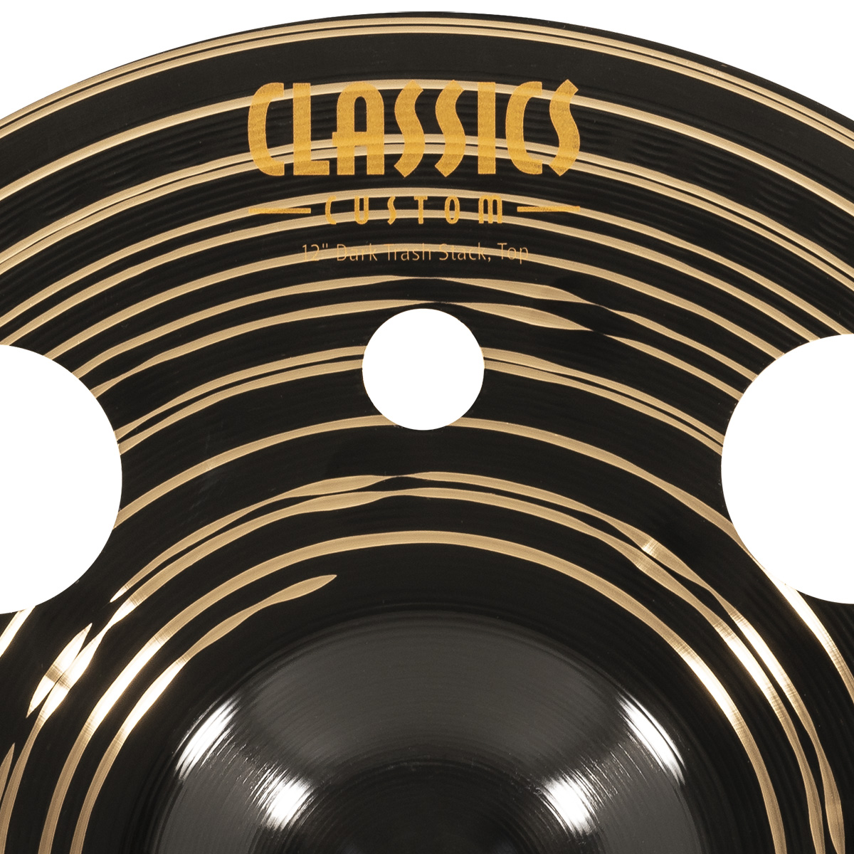 Platillo dark trash stack, serie Classic Custom, diámetro: 12″ pulgadas, timbre oscuro, carácter rico y musical, tono alto-medio, volumen medio, sustain corto, peso medio, terminado oscuro, fabricado con aleación de bronce B12, torneado: lámina ancha, estilos: metal, rock, pop, fusion, estudio.