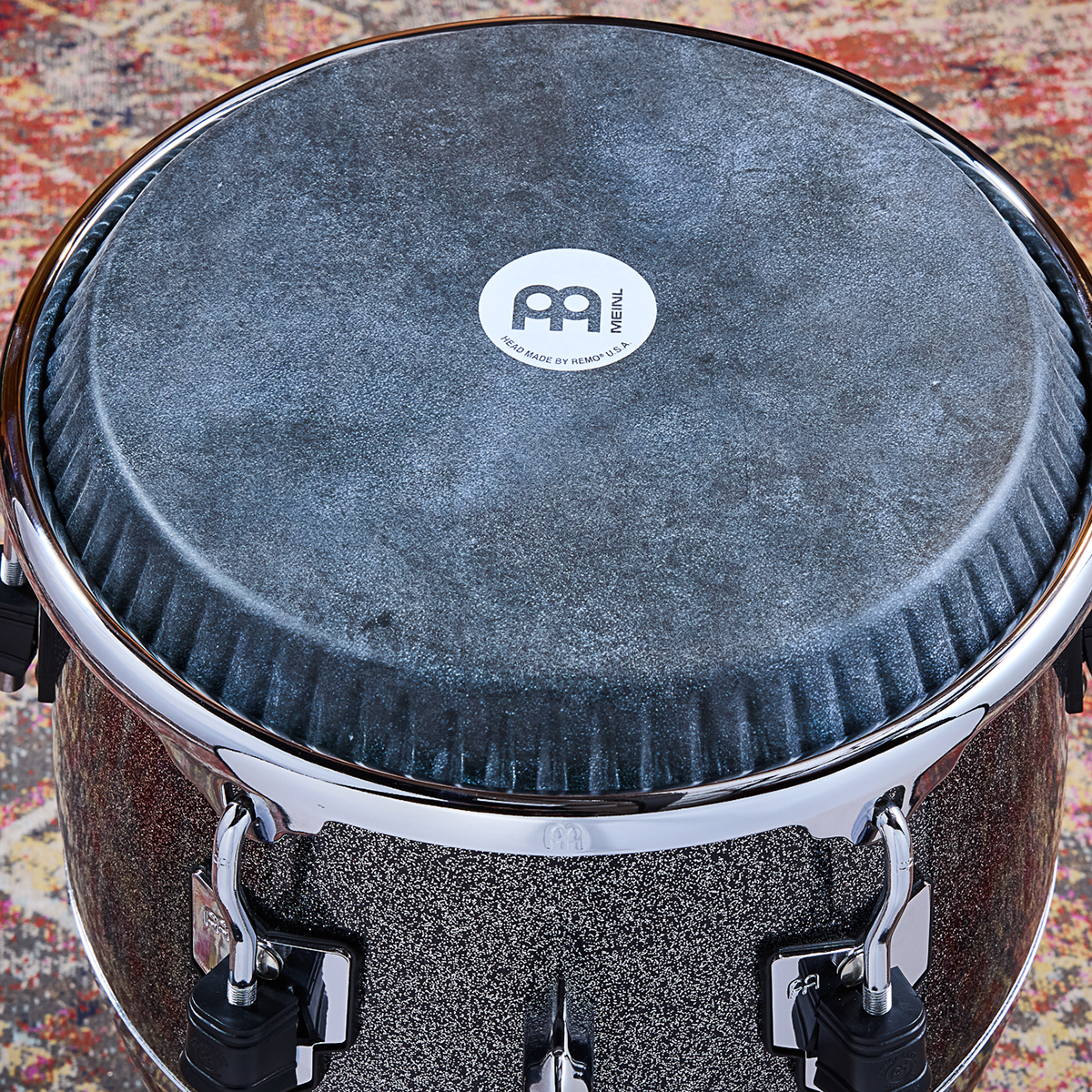 Equipada con un parche REMO® Skyndeep de cuero de becerro negro, esta tumbadora combina la calidez del cuero natural con la durabilidad y estabilidad de afinación de los parches sintéticos. Los tornillos de afinación de 10 mm y el aro redondeado SSR de 4 mm permiten una afinación precisa y cómoda, adaptándose a las necesidades del músico profesional.