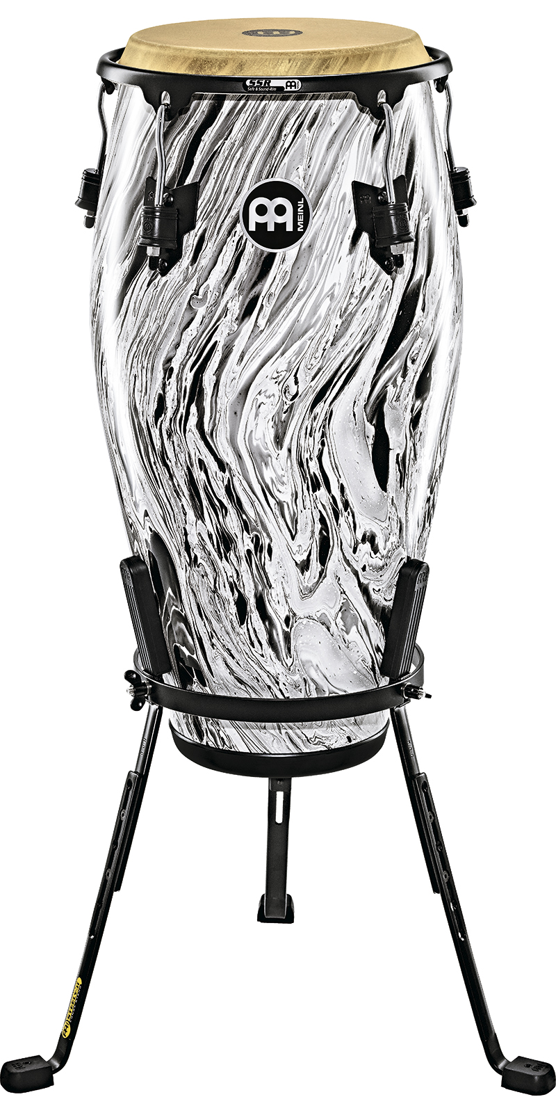 Las bases tipo canasta de las congas Marathon te permiten colocarlas a diferentes alturas y al ser independientes te dan la comodidad de ponerlas a la distancia que necesites.