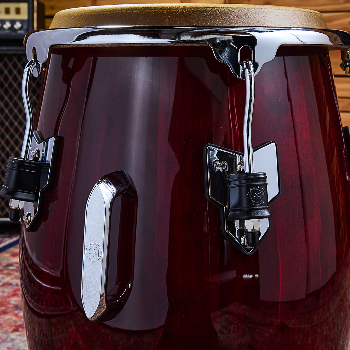 quipada con un parche de piel de búfalo True Skin, esta conga ofrece un tono cálido y natural, ideal para una amplia variedad de estilos musicales. Los tornillos de afinación de 8 mm y el aro redondeado SSR de 2,6 mm permiten una afinación precisa y estable, adaptándose a las necesidades del músico profesional.