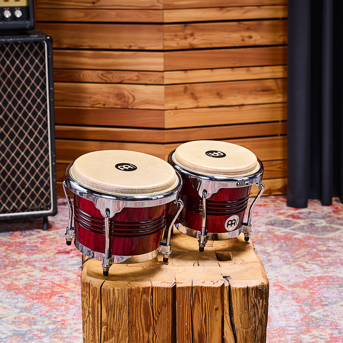 Los bongós Meinl WB200WRP-CH de la serie Marathon Exclusive combinan un diseño profesional con materiales de alta calidad, ideales tanto para escenarios como para estudios de grabación.