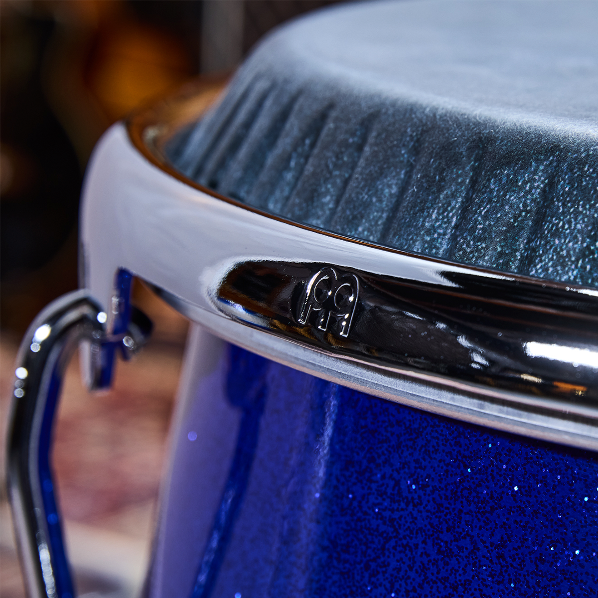 Sus tirantes macizos de 10 mm, aros SSR redondeados de 4 mm y herrajes cromados proporcionan durabilidad y estabilidad en la afinación, mientras que su acabado Blue Wave brillante le otorga un aspecto moderno y atractivo.