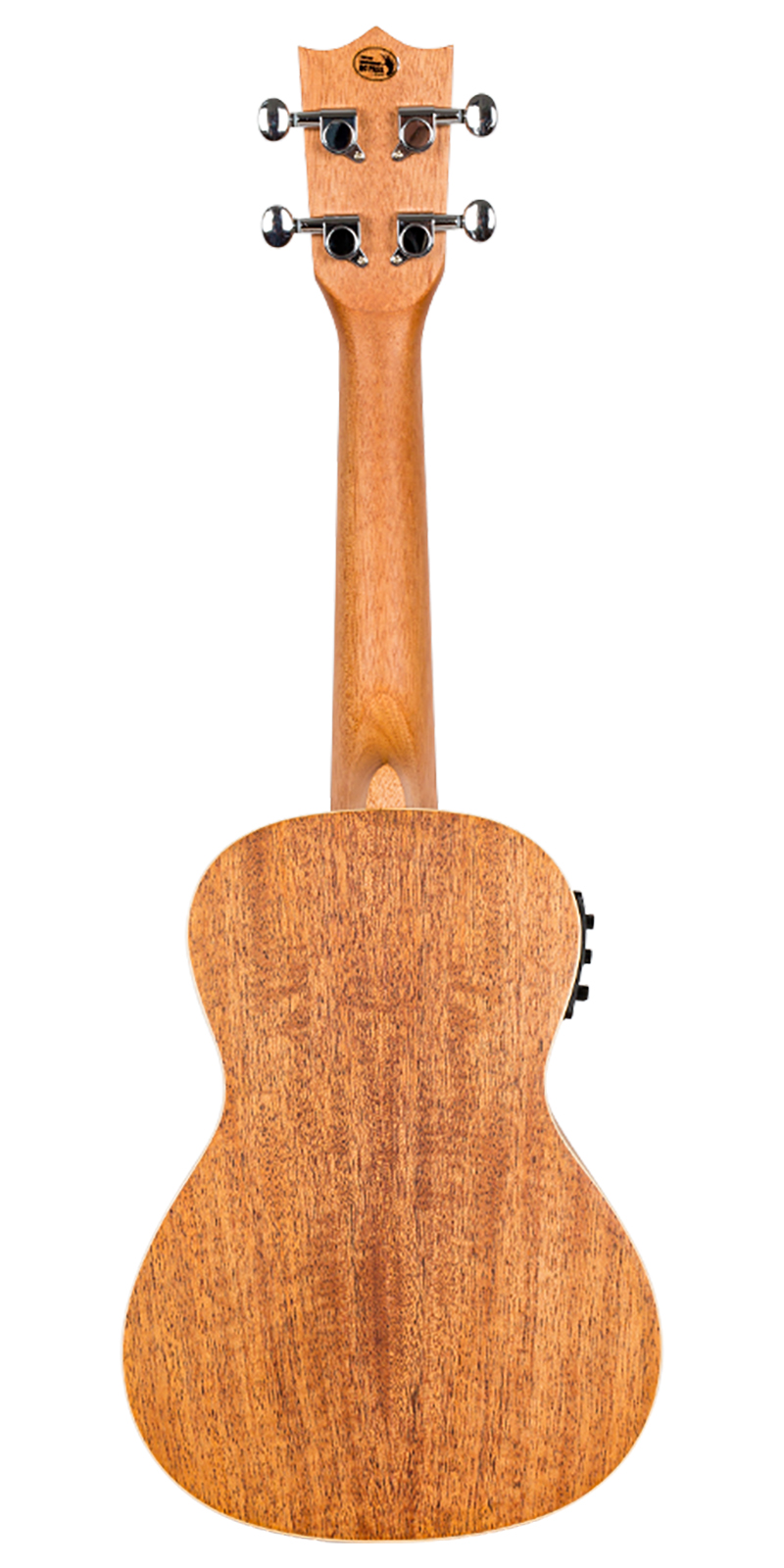La caoba es una madera que se usa para construir instrumentos de calidad desde hace siglos. Su color puede variar desde un marrón claro rosado hasta un marrón oscuro rojizo, y tiende a oscurecerse con el tiempo. No permitas que el aspecto “sobrio” de la caoba te engañe: los ukeleles de caoba, en especial aquellos con la tapa trasera arqueada, saben cómo rugir.