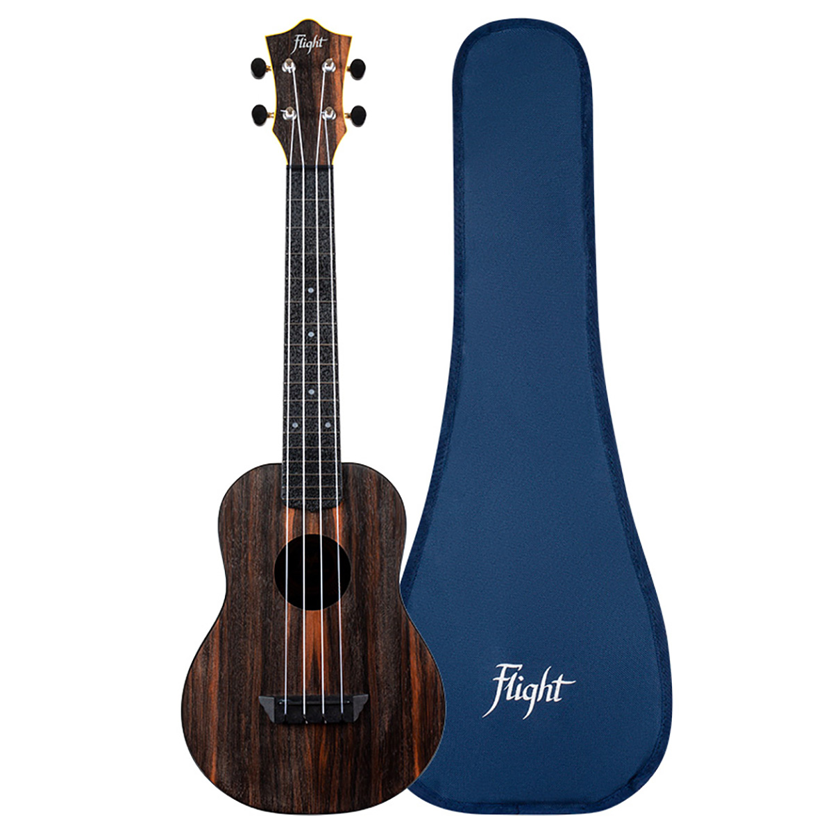 La serie Travel de ukeleles de Flight incluye una funda ligera para facilitar el transporte y proteger las cuerdas durante el viaje. El color azul es elegante y se destaca de las fundas negras que utilizan la mayoría de los músicos.
