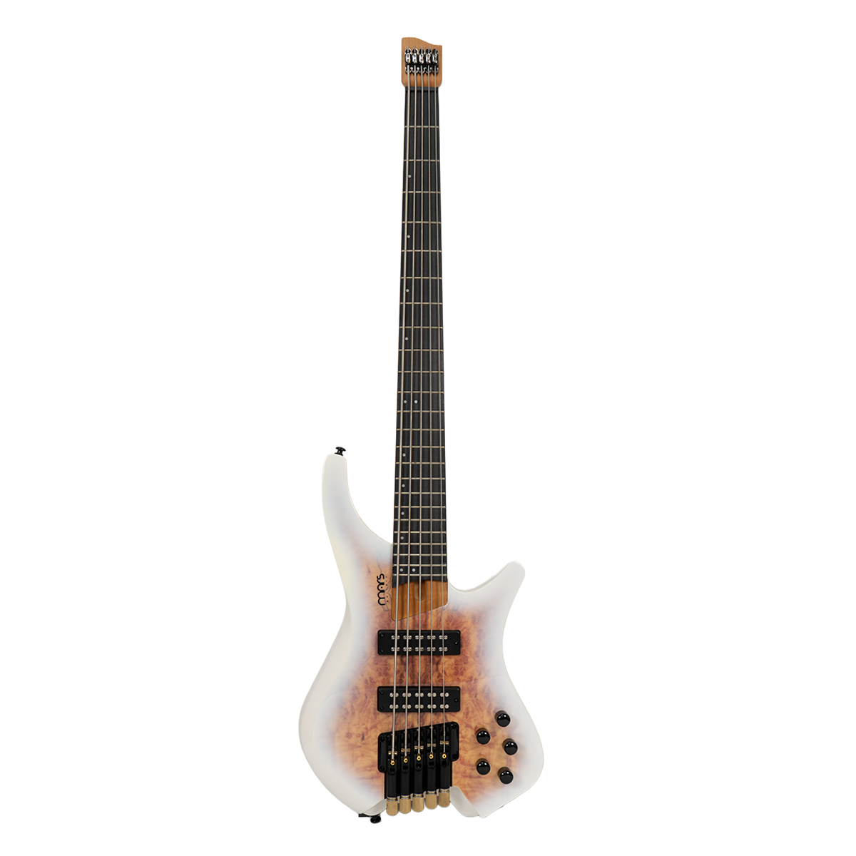 Con una escala estándar de 34 pulgadas y estructura de 5 cuerdas, el HEADLESS 5 ofrece un rango sonoro amplio. Este bajo monta una pastilla humbucker cerámica de 5 cuerdas, lo que garantiza graves contundentes, medios definidos y agudos con buen ataque. Además, sus controles (volumen, balance, y un EQ de 3 bandas: Bass, Middle, Treble) ofrecen una amplia paleta de matices: puedes moldear el sonido desde tonos cálidos y redondos hasta texturas agresivas y potentes, adaptándolo a distintos contextos musicales.
