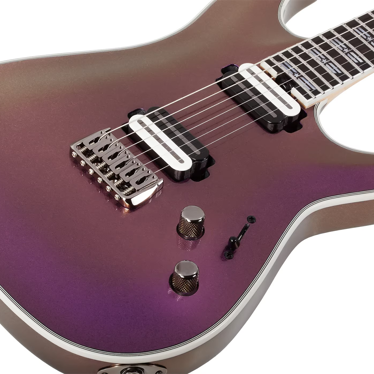 El hardware negro níquel, junto con el puente Schecter Nouveau Ergo Hardtail y las clavijas TonePros Locking, aseguran afinación precisa y gran sustain. Detalles como las incrustaciones “Hollywood Stars”, marcadores laterales Luminlay y cejuela Graph Tech XL Tusq completan un instrumento pensado para músicos que buscan precisión, estilo y fiabilidad profesional desde su primera interpretación.