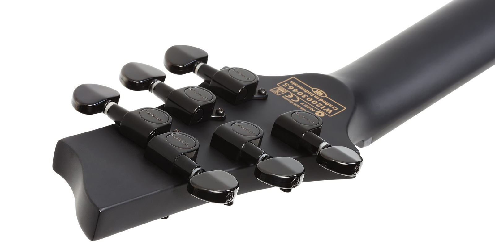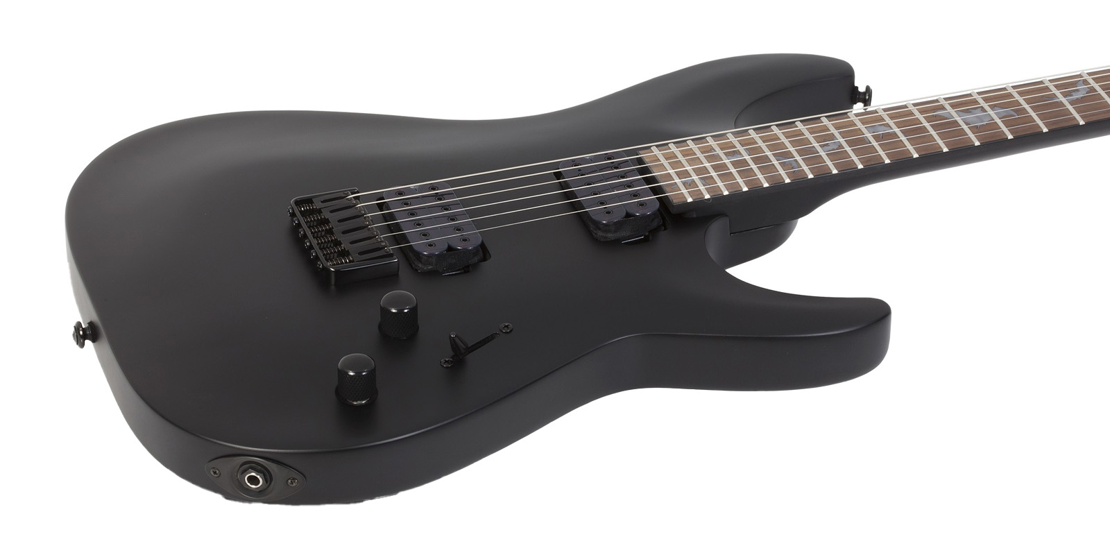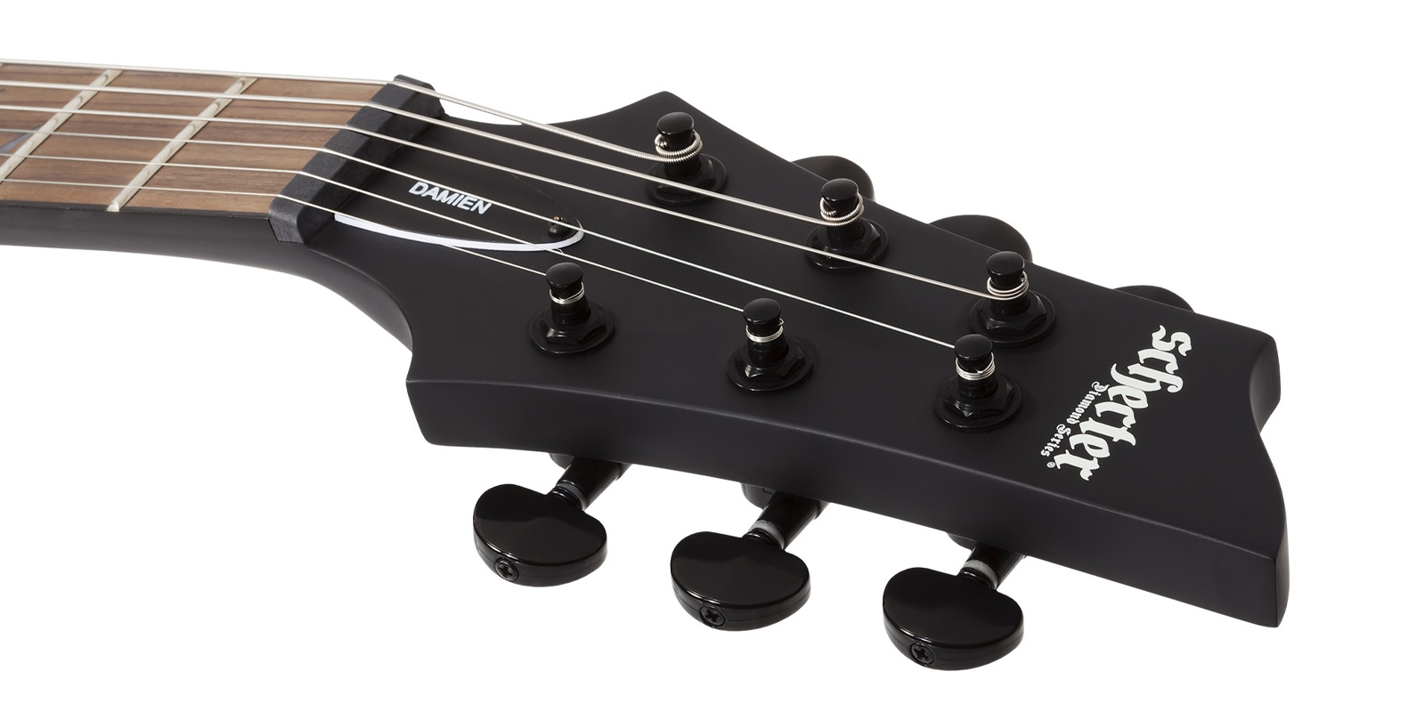 Los instrumentos de la serie Damien están equipados con pastillas pasivas EMG HZ. Estas pastillas aportan un alto rendimiento y tienen un sonido muy limpio. El mástil de arce está atornillado al Lindebody, los bates negros de nácar adornan el diapasón de palisandro.