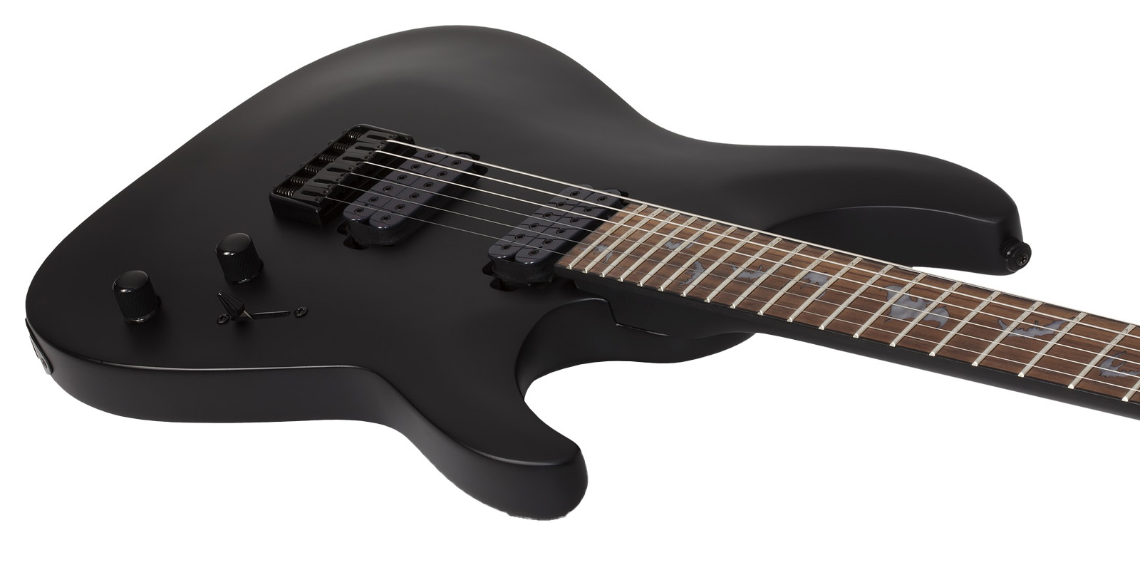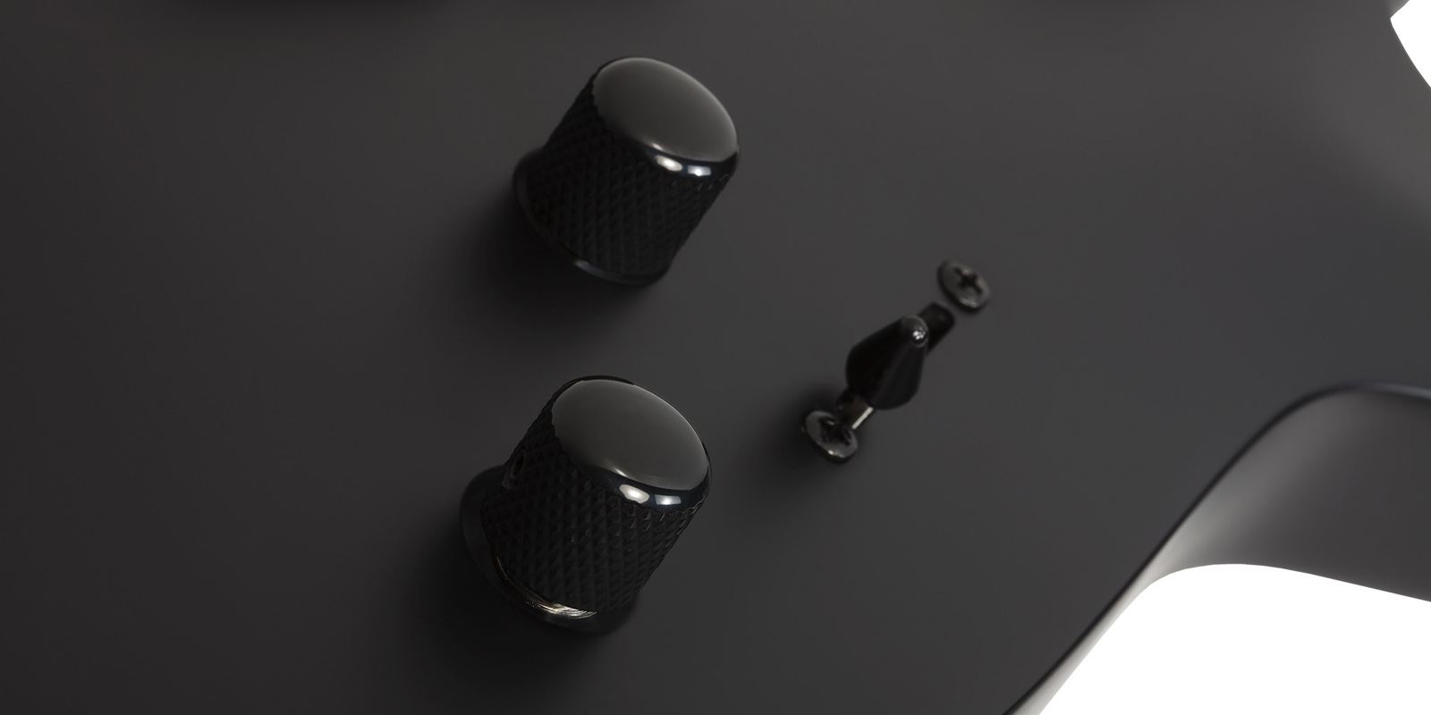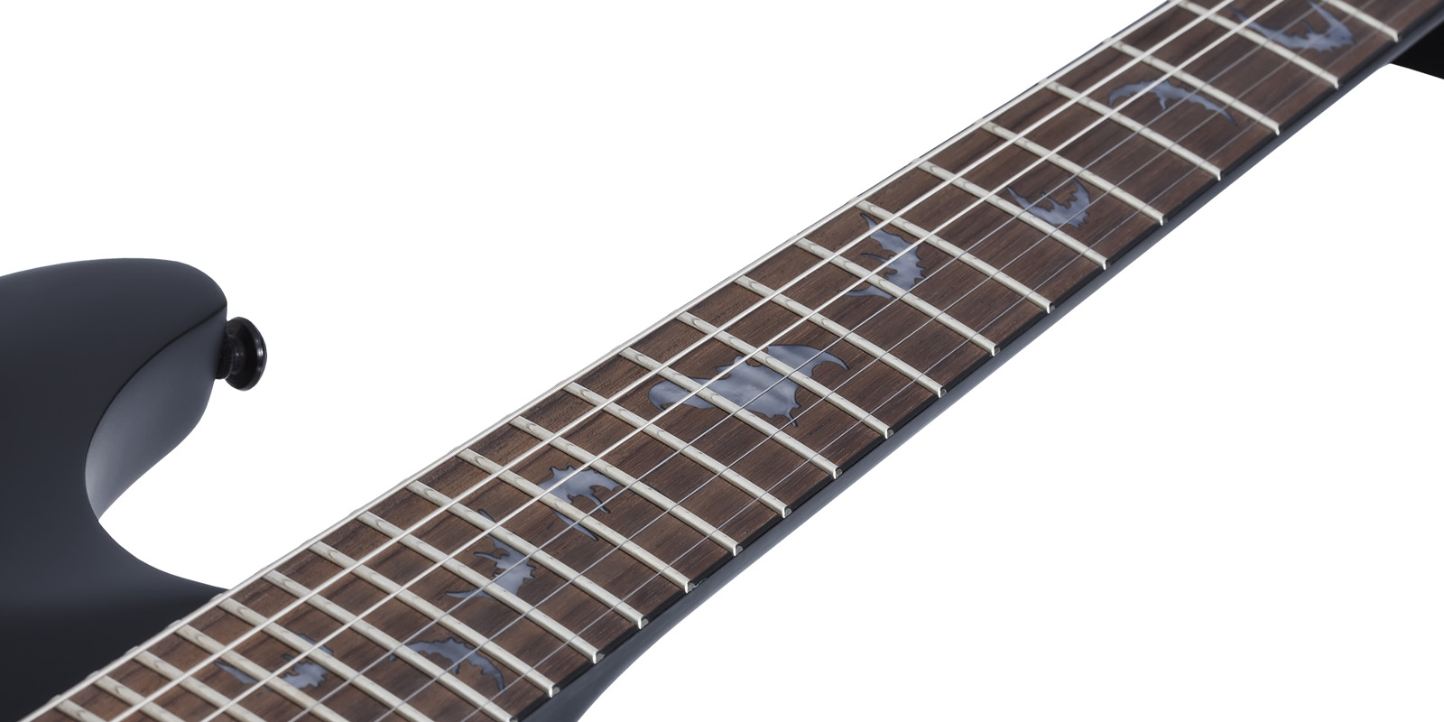 Los instrumentos de la serie Damien están equipados con pastillas pasivas EMG HZ. Estas pastillas aportan un alto rendimiento y tienen un sonido muy limpio. El mástil de arce está atornillado al Lindebody, los bates negros de nácar adornan el diapasón de palisandro.