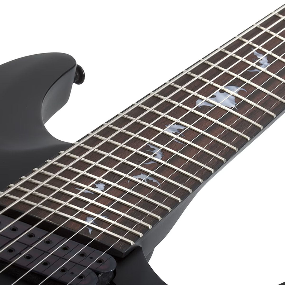 El cuerpo de caoba aporta profundidad y calidez tonal, mientras que el mástil de arce con diapasón de palisandro y refuerzo de alma de doble acción proporciona gran durabilidad y control de ajuste. Su perfil Thin “C” y los 24 trastes jumbo ofrecen una ejecución fluida y cómoda incluso en pasajes complejos. El puente Hipshot 8-String Multiscale Fixed asegura una afinación precisa y una transferencia óptima de vibraciones, complementado por las pastillas Schecter Diamond Heretic, que entregan un tono agresivo, definido y con amplio rango dinámico.