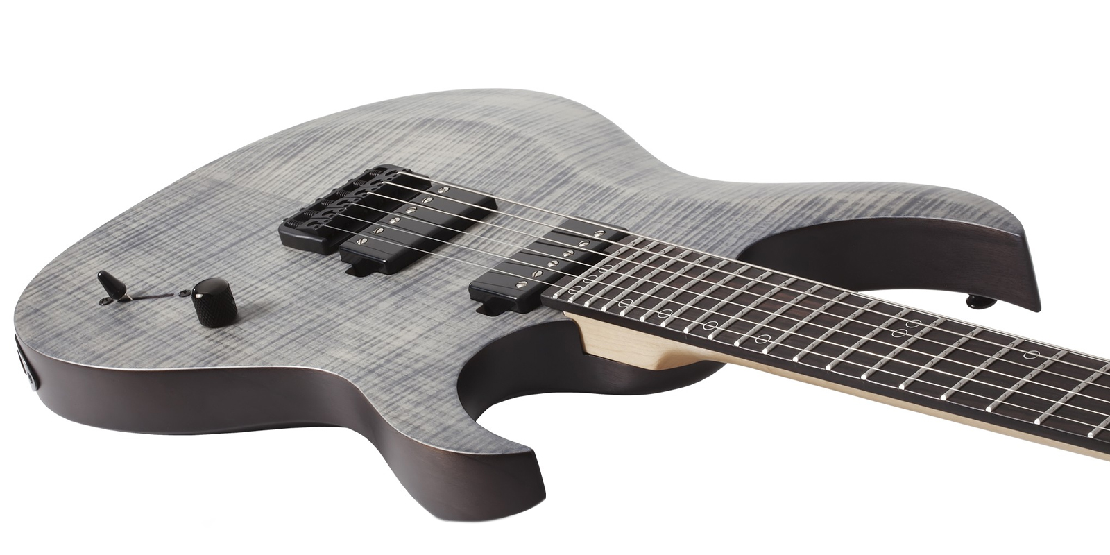Sunset-6 Extreme construido con arce, palo de rosa, nyatoh y ébano, mástil de alta velocidad con 24 trastes.