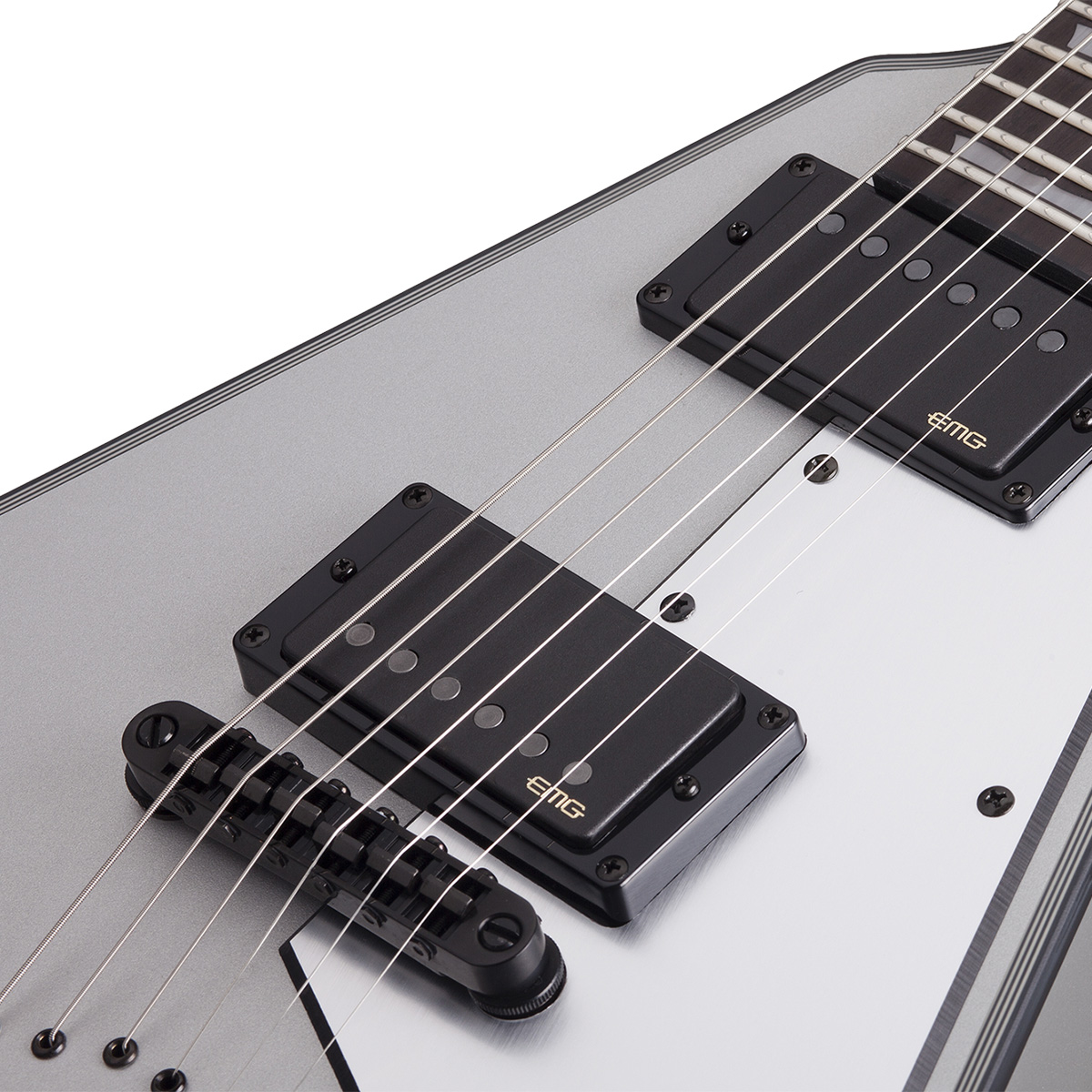 Guitarra eléctrica sólida tipo Flying V.