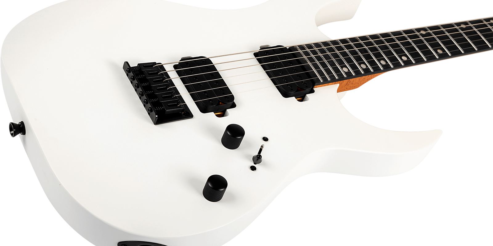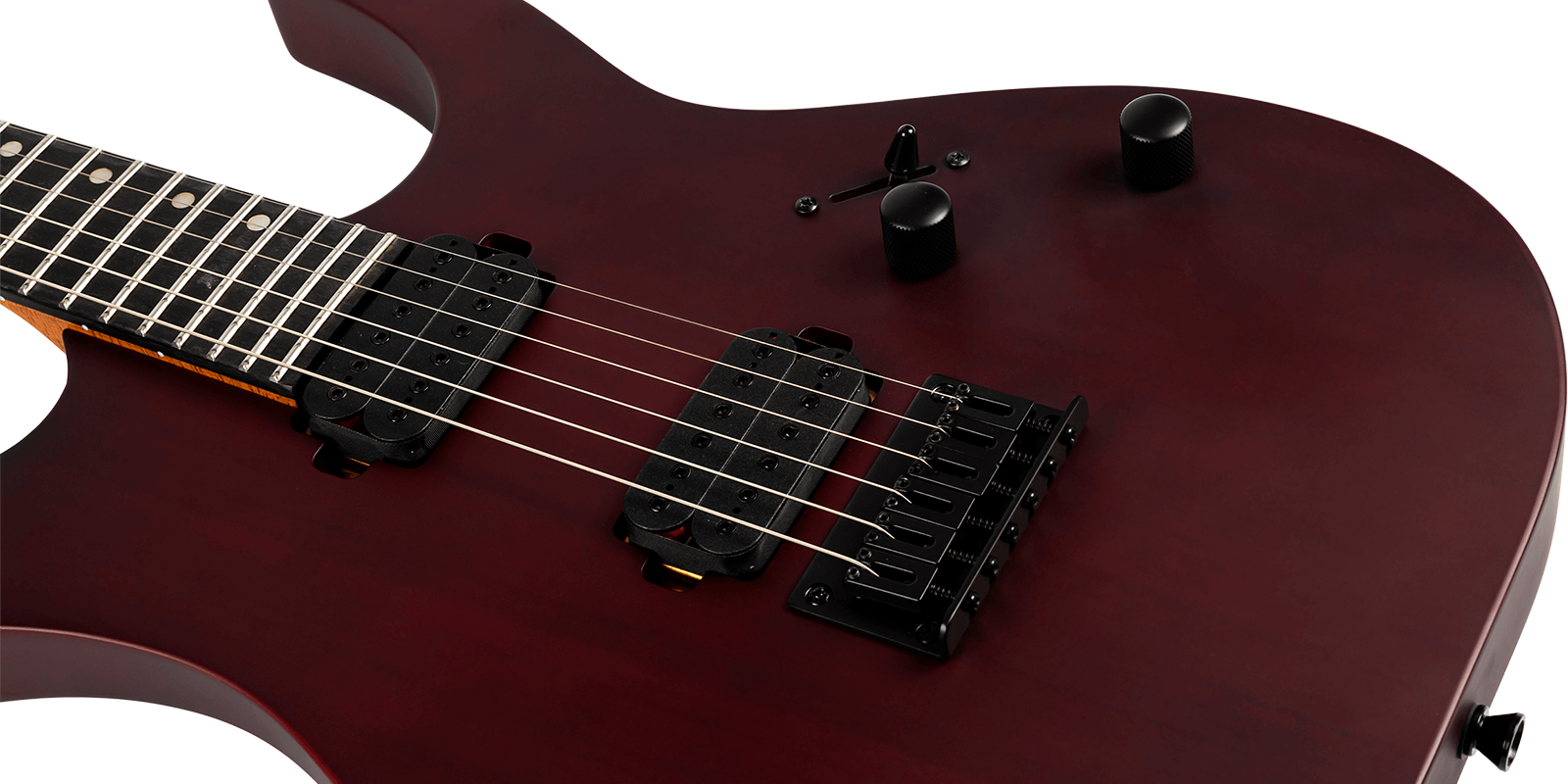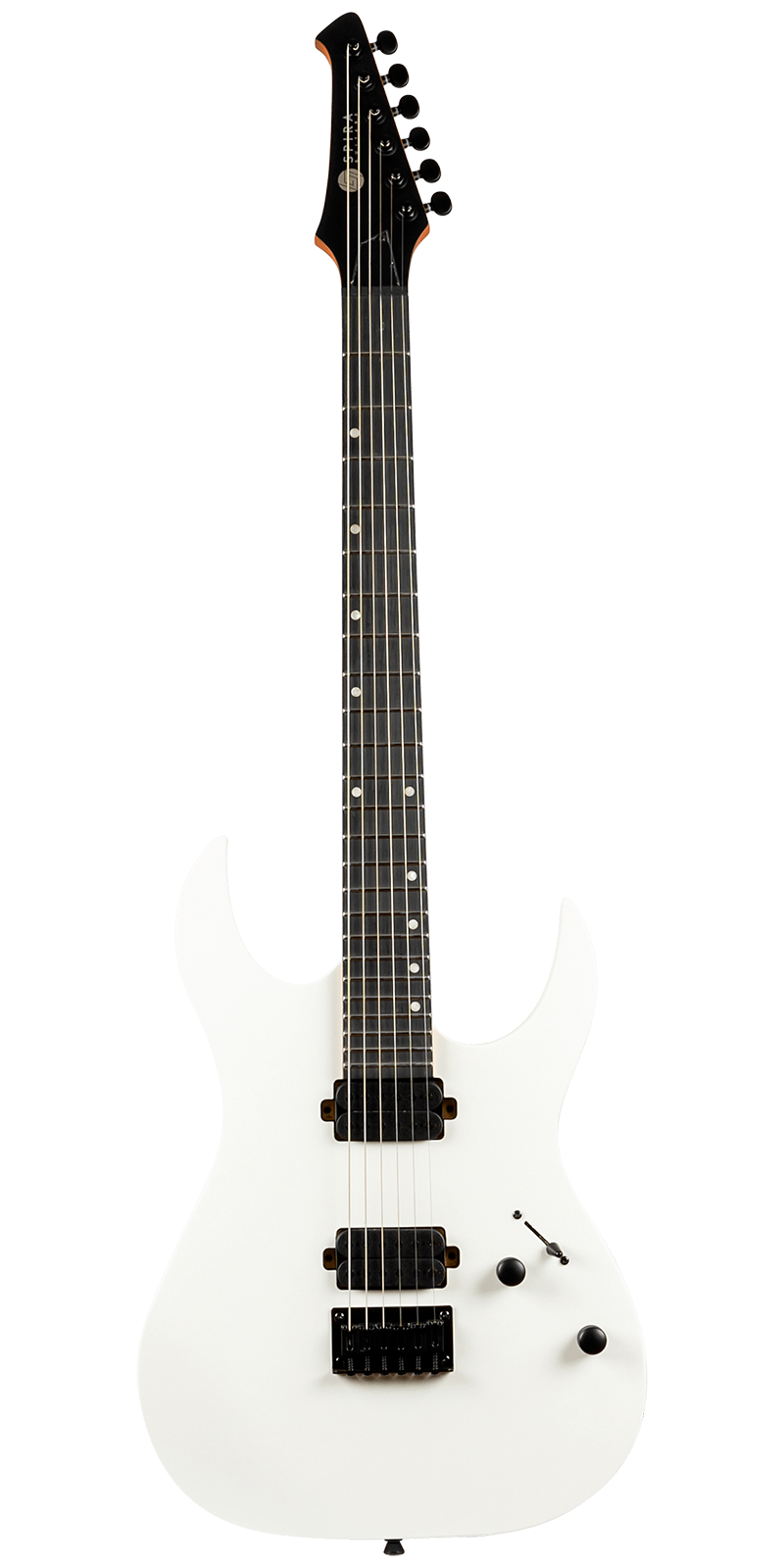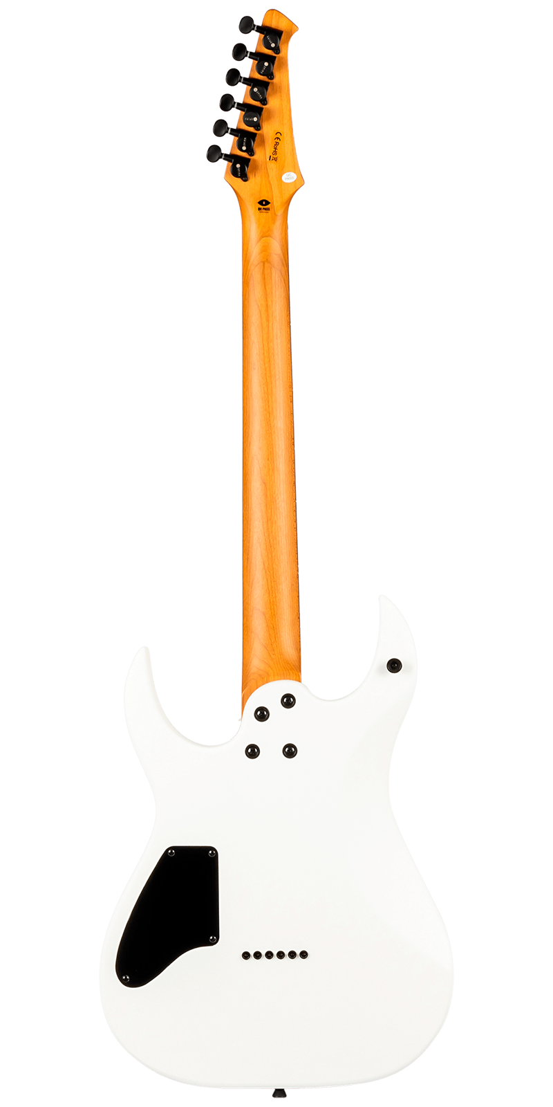 Equipada con un set de humbuckers personalizados de 12k con imanes cerámicos, la S-400 entrega un sonido potente y articulado, perfecto para estilos de alta ganancia sin perder claridad en registros limpios. Su puente fijo, junto con clavijas de bloqueo y hardware de precisión, garantizan afinación estable y entonación confiable tanto en escenario como en estudio.
