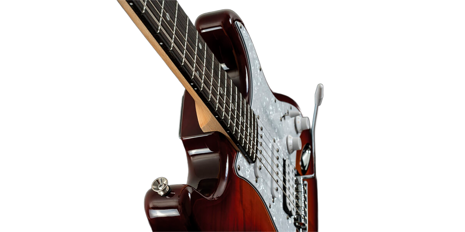 La Washburn Sonamaster Deluxe combina estética y rendimiento en una guitarra eléctrica diseñada para guitarristas que buscan un instrumento versátil y confiable. Su cuerpo de okoume con tapa de flame maple realza el sustain y añade un aspecto elegante bajo el acabado gloss. El mástil de maple atornillado con diapasón de techwood garantiza comodidad y estabilidad en la ejecución. Con su configuración de pastillas H-S-S (un humbucker Washburn en puente y dos single coil Sonamaster+), junto al selector de 5 posiciones, permite explorar desde tonos brillantes y definidos hasta sonidos potentes y saturados. Incluye puente vintage tremolo y herrajes cromados para una experiencia de ejecución completa y flexible en cualquier estilo musical.