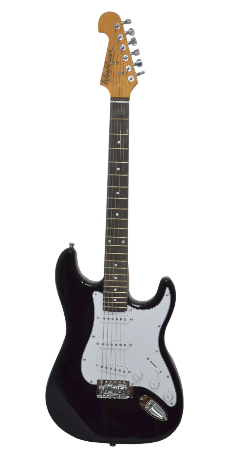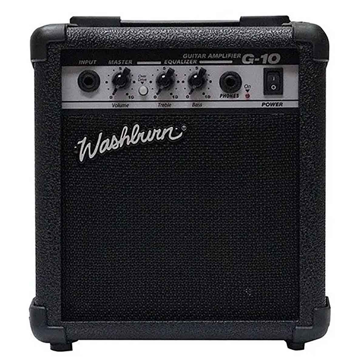 Se trata de un paquete de guitarra eléctrica que contiene un amplificador de 10 watts, cable, tahalí, plumillas y funda. La guitarra Washburn de la serie Sonamaster cuenta con cuerpo de tilo, brazo de maple, diapasón de palo de rosa, 2 2trastes, pastillas Triple Washburn Sonamaster y una palanca trémolo. El amplificador es un modelo G-10 de 10 watts de potencia que cuenta con un ecualizador de 2 bandas, canal clean y overdrive, salida de audífonos y un woofer de 5” pulgadas a 8 ohms.