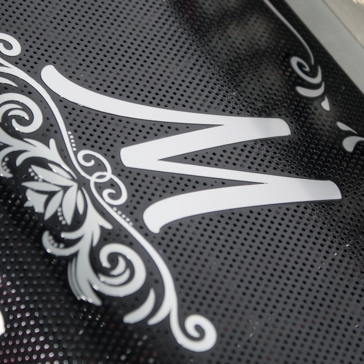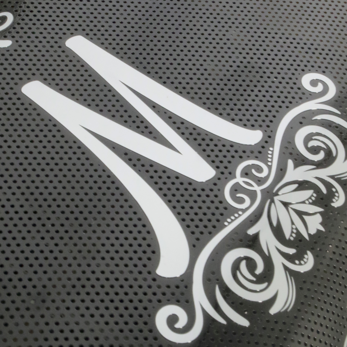 Placas metálicas con diseño original en sección de bajos y agudos.