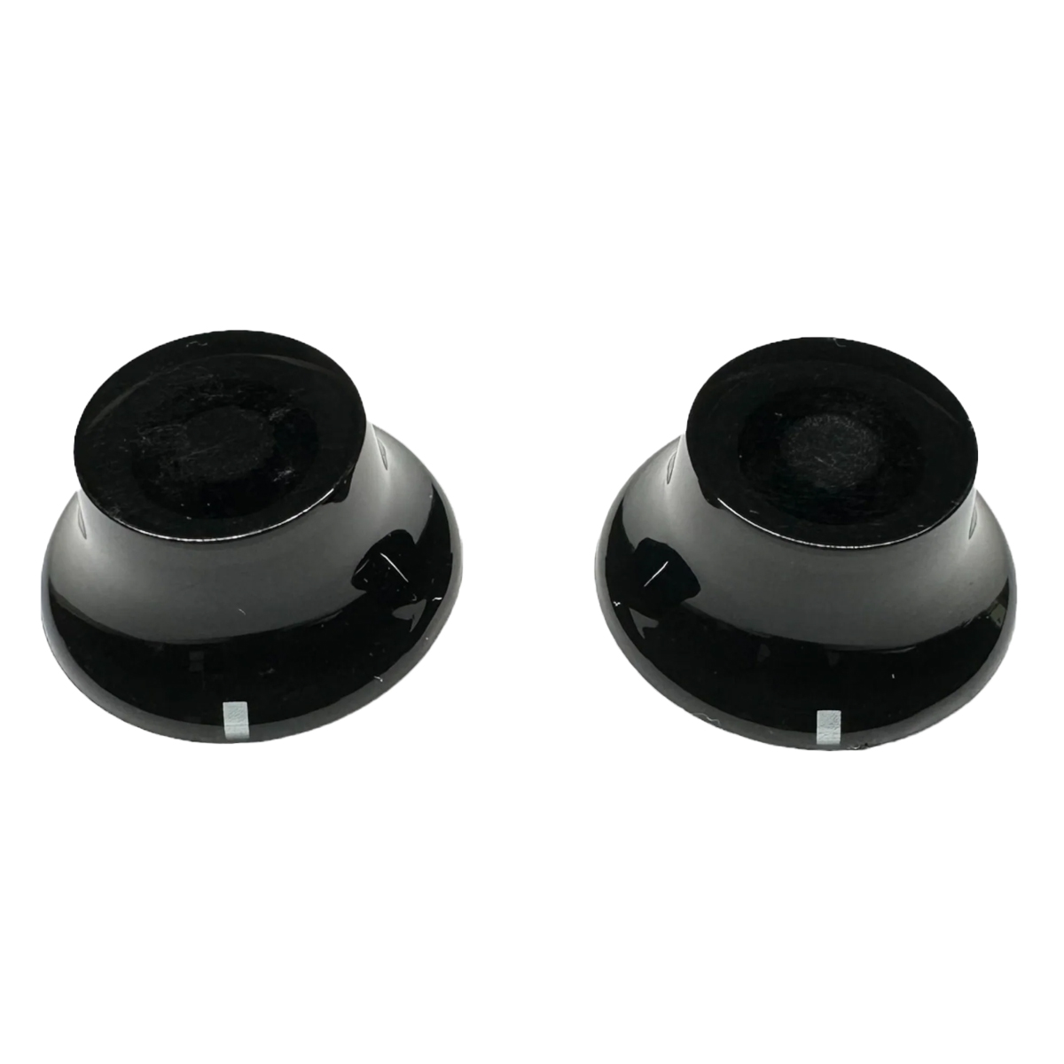 Los pomos de campana de plástico clásicos en blanco se ajustan a ejes de olla de 18 estrías. Se vende en juegos de 2 pomos.