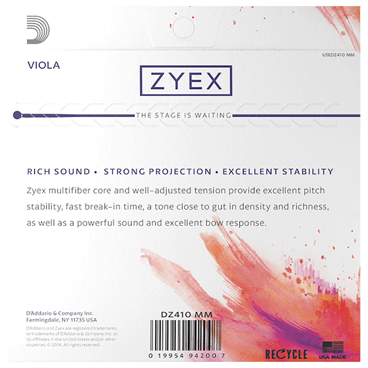 Estas cuerdas para viola de tensión media están optimizadas para satisfacer las necesidades de la mayoría de los músicos. Cuentan con una tensión mediana y son aptas para violas de escala media (longitud del cuerpo de 15 a 15 ¾” pulgadas (381-400 mm) con una longitud de ejecución de 14 1/8 pulgadas (360 mm), se ofrecen en estuches sellados de diseño exclusivo que proporcionan protección inigualable contra los elementos que causan corrosión. Estas cuerdas con núcleo sintético Zyex producen un sonido extremadamente cálido y profundo. Están fabricadas en un material sintético de última generación que permite que las se mantengan increíblemente estables en condiciones climáticas adversas.