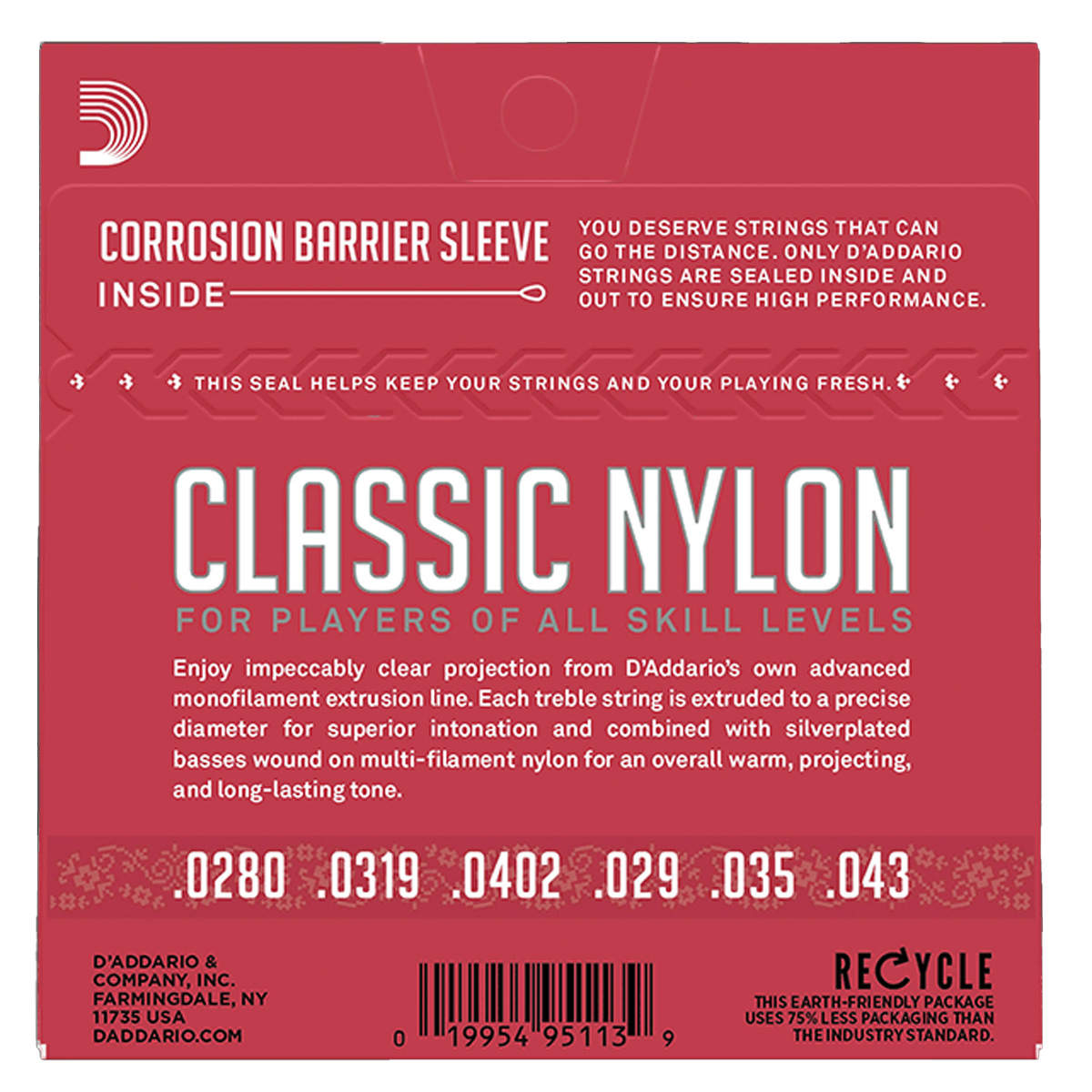 Las cuerdas D´Addario Classic Nylon Student están diseñadas específicamente para guitarristas clásicos principiantes. La combinación tradicional de cobre plateado enrollado sobre nailon y agudos de nailon transparente aporta un equilibrio encantadoramente suave que toca la fibra sensible de los estudiantes. Los juegos de nailon clásicos también están disponibles en tamaños más pequeños para adaptarse a los instrumentos del alumno. Las cuerdas de tensión normal son nuestras cuerdas de tensión más vendidas, preferidas por su equilibrio de tono rico, sensación cómoda y proyección dinámica.
