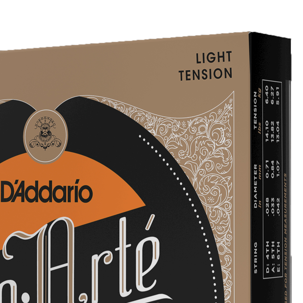 Arraigado en generaciones de experiencia en la fabricación de cuerdas de D´Addario, Pro-Arte´ Nylon es nuestro conjunto clásico arquetípico. Las cuerdas del bajo están hechas con un núcleo de nailon multifilamento y entorchadas con cobre plateado, para una respuesta excepcionalmente cálida y consistente. Junto con cuerdas agudas de nailon transparente, que ofrecen agudos dulces y suaves, el nailon de Pro-Arte te brinda el sonido y la sensación que han llegado a definir la guitarra clásica. Estas cuerdas de tensión ligera son ideales para principiantes o jugadores experimentados con un toque ligero.