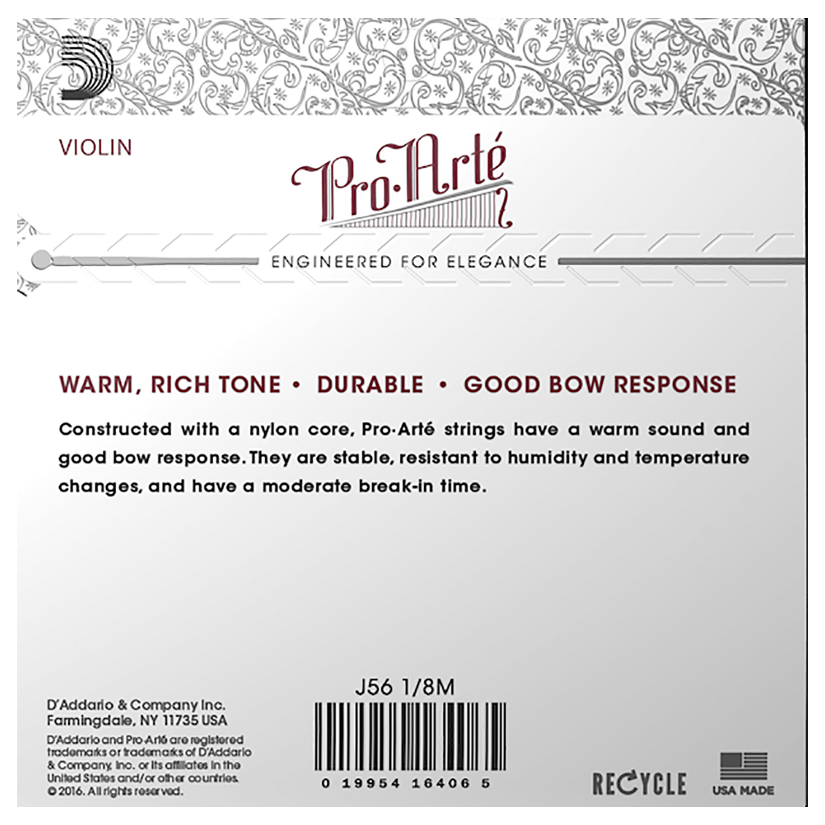 Las cuerdas para violín con núcleo sintético de Pro-Arte ofrecen un tono cálido y melodioso. Son menos sensibles a los cambios de humedad y temperatura, y permiten un acostumbramiento rápido. Las cuerdas Pro-Arte están fabricadas con una menor tensión para maximizar la respuesta del arco, la combinación tonal y la facilidad de uso. La opción perfecta para músicos que buscan un tono cálido y oscuro.