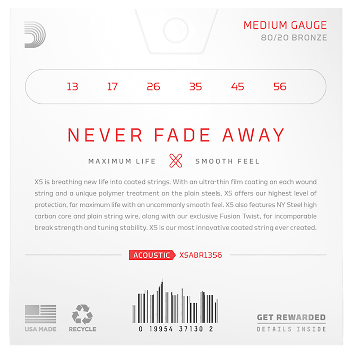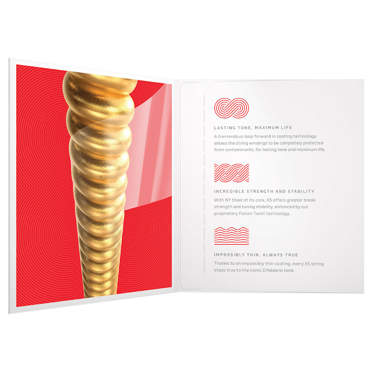 XS está dando nueva vida a las cuerdas recubiertas. Con su revestimiento de película ultra delgada en cada cuerda enrollada y un tratamiento de polímetro único en los aceros simples, XS ofrece el más alto nivel de protección para una vida útil máxima con una sensación de suavidad poco común, XS es la cuerda más innovadora jamás creada.