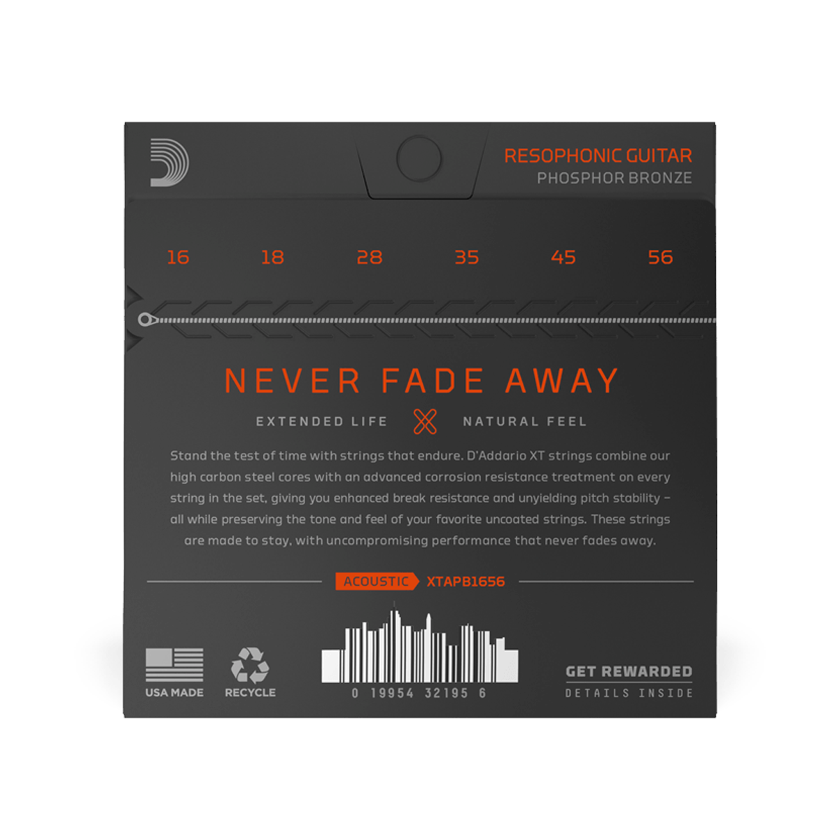 Estas cuerdas XT Phosphor Bronze, calibre 16–56, están diseñadas para un tono cálido, brillante y con proyección potente. Perfectas para estilos de fingerpicking o slide.
