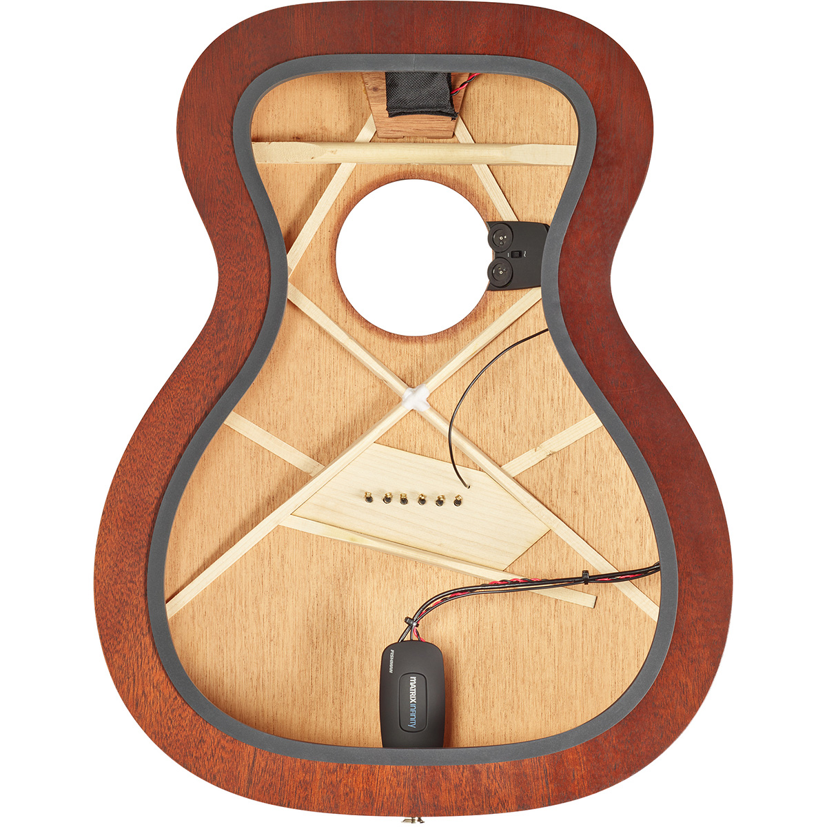 - Recinto rediseñado para controles de volumen y tono montados en la boca de la guitarra.