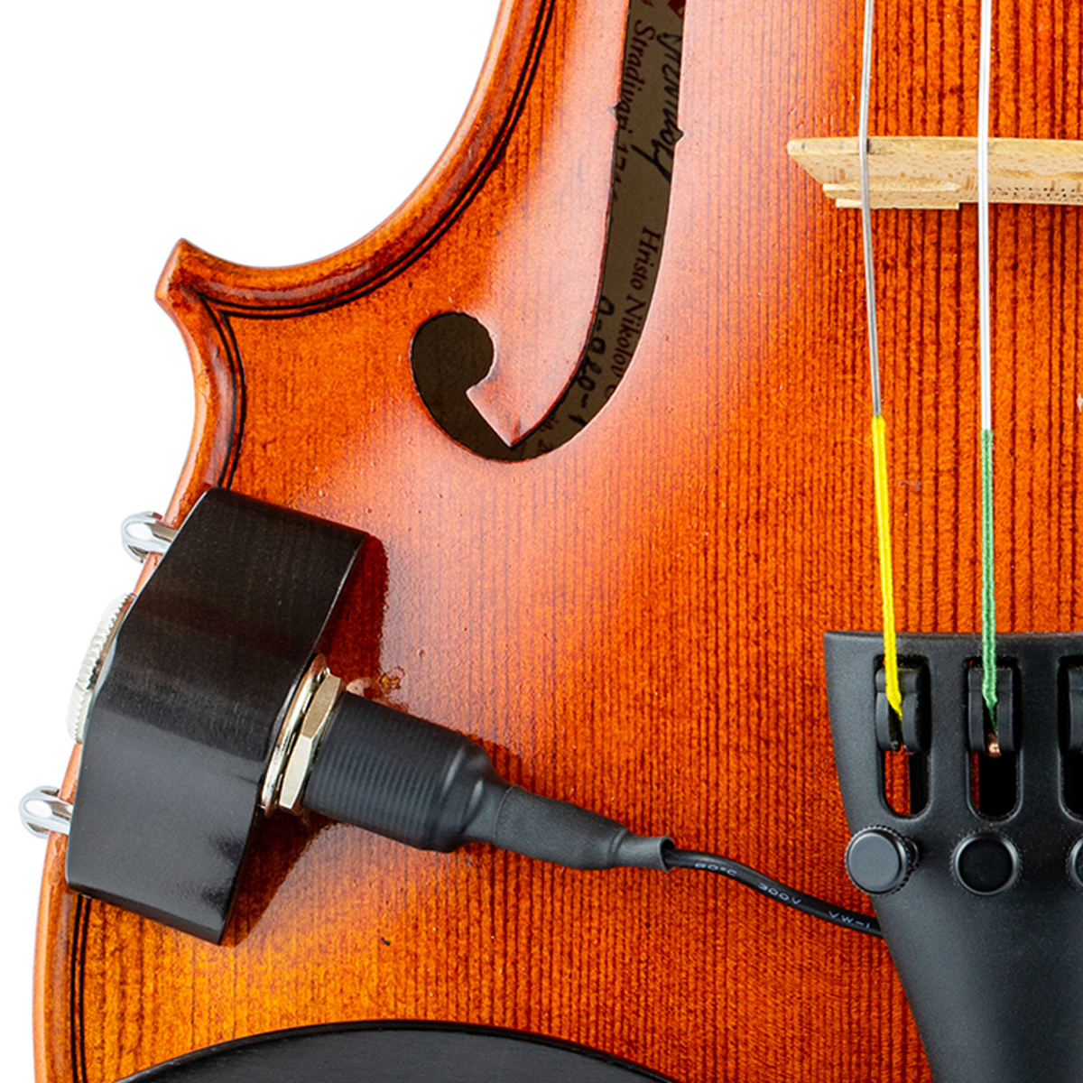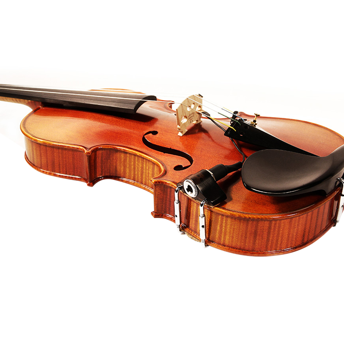 Piezoeléctrico portátil de bajo perfil montado en el puente para violín o viola. La pastilla de violín o viola VV-3 ofrece un sonido acústico limpio y claro con una fácil instalación sin modificar el instrumento. La carcasa del conector de ébano de bajo perfil y peso ligero hace que la unidad sea ideal para un músico.