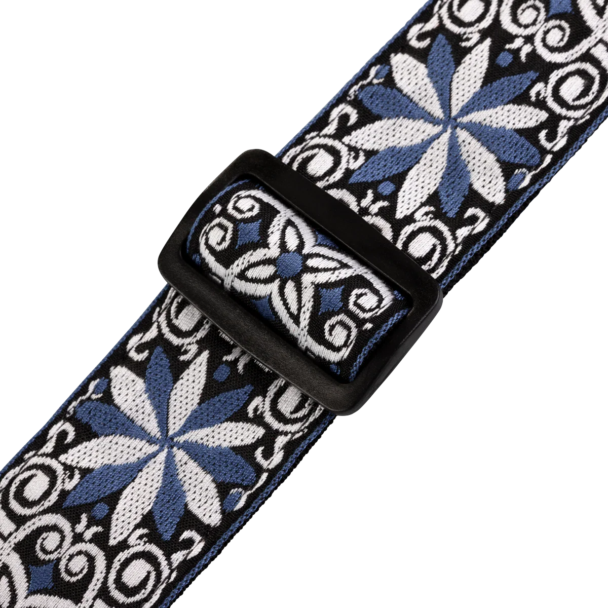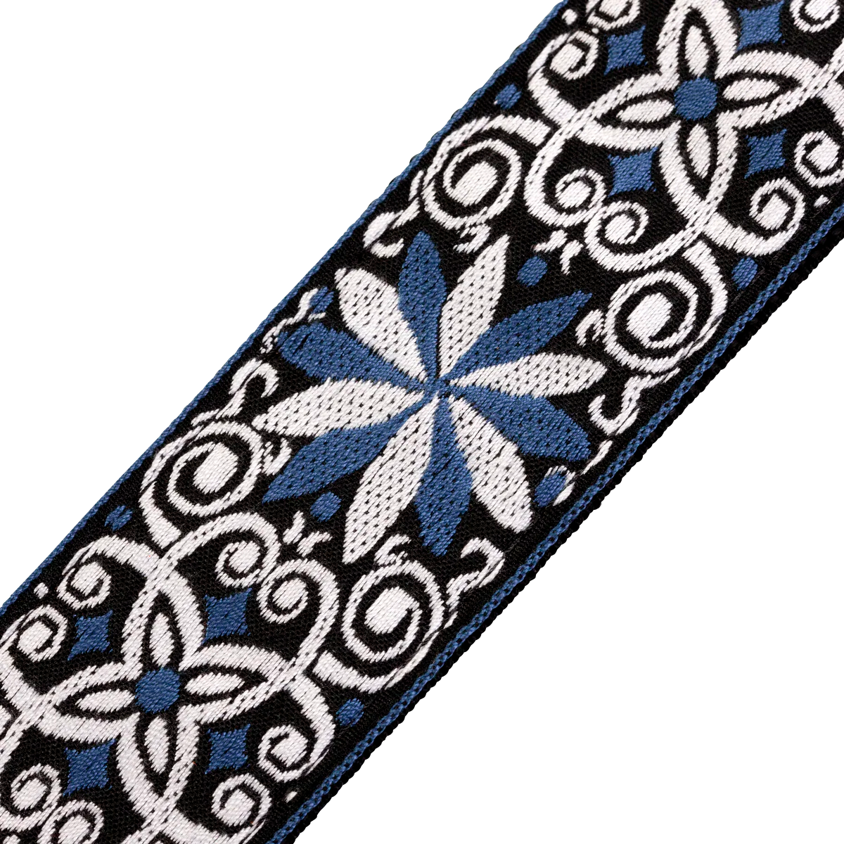 - Correa de guitarra tejida de 2” con motivo floral azul y blanco
