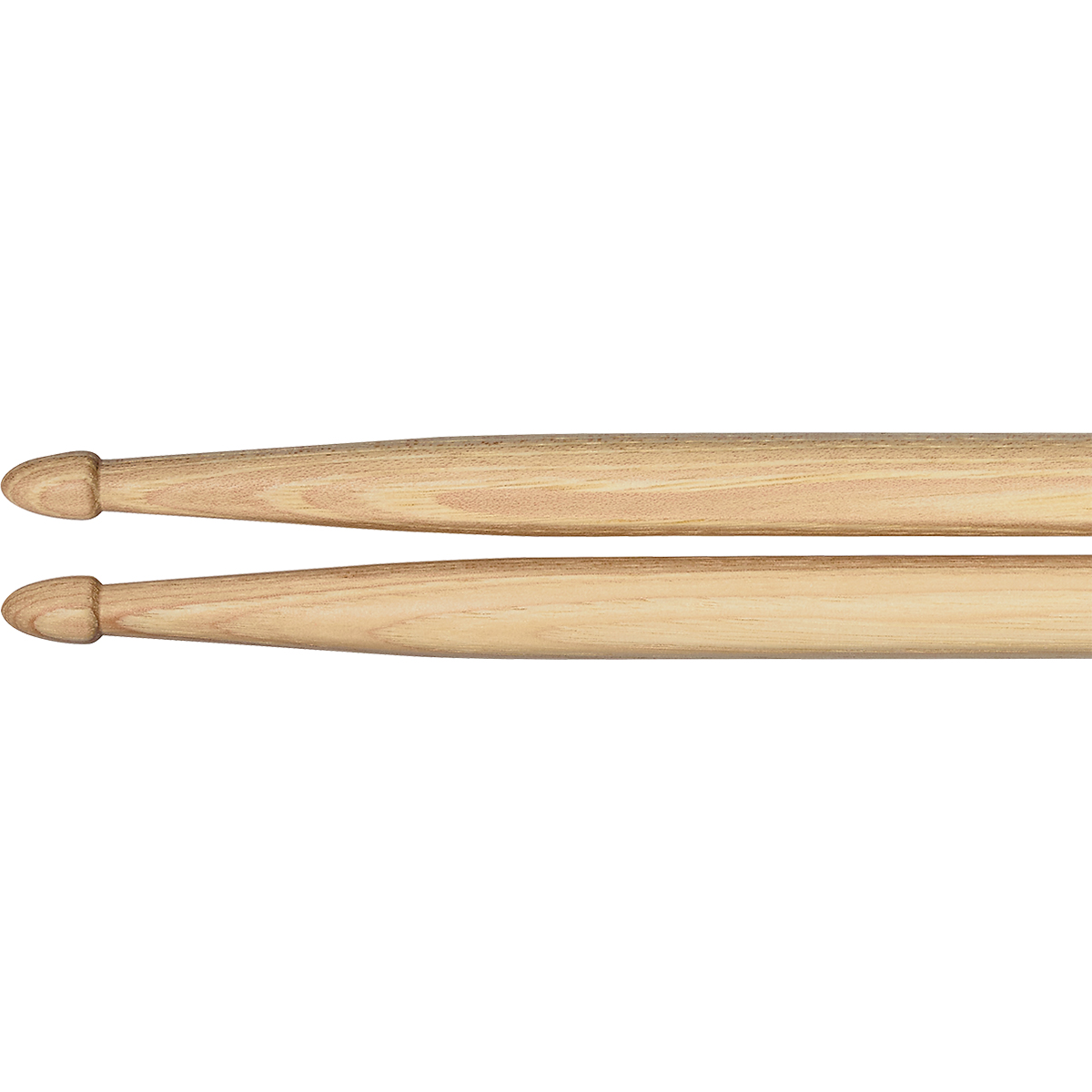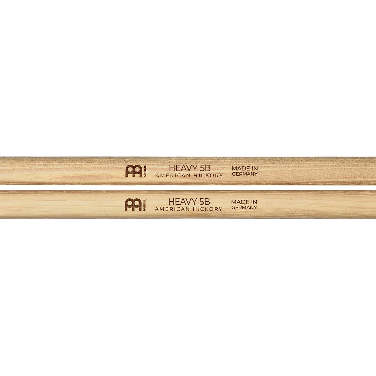 Baquetas 5B, serie Heavy American Hickory, punta de bellota, fabricadas con nogal americano, peso y tono a juego, largo: 16.5″ pulgadas (41.9 cm), diámetro: 0.605″ pulgadas (15.4 mm), longitud cónica corta.
