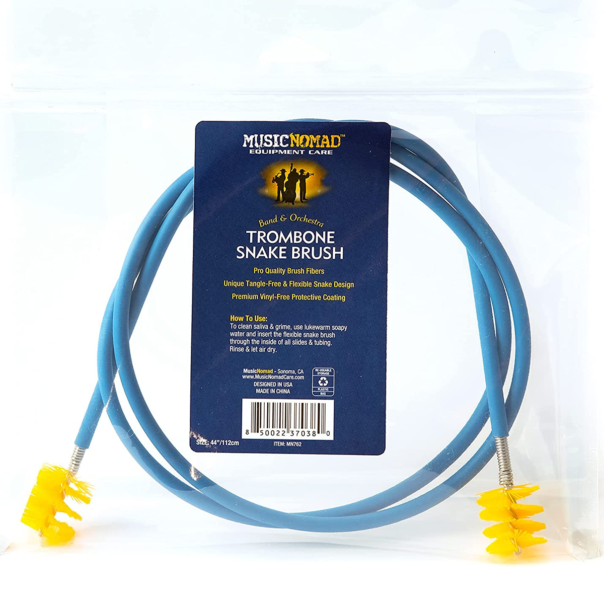 MusicNomad ha establecido un nuevo estándar más alto de lo que debes esperar cuando compras un cepillo de limpieza tipo serpiente para trombón. Nuestro exclusivo diseño flexible y sin enredos de 44″ pulgadas (112 cm) se desenrolla en línea recta, lo que facilita la limpieza. Nuestro núcleo de acero inoxidable de primera calidad está protegido por nuestro innovador revestimiento impermeable que no contiene PVC ni vinilo y protege tu instrumento. Nuestras fibras de calidad profesional en ambos extremos son la resistencia a la tracción perfecta que necesitas para una limpieza eficaz de la suciedad y la saliva, un detalle fundamental que apreciarás. Incluso viene en una práctica bolsa de almacenamiento resellable, reutilizable y reciclable. Esa es la calidad de MusicNomas: Elevar el nivel en el cuidado de tu equipo.