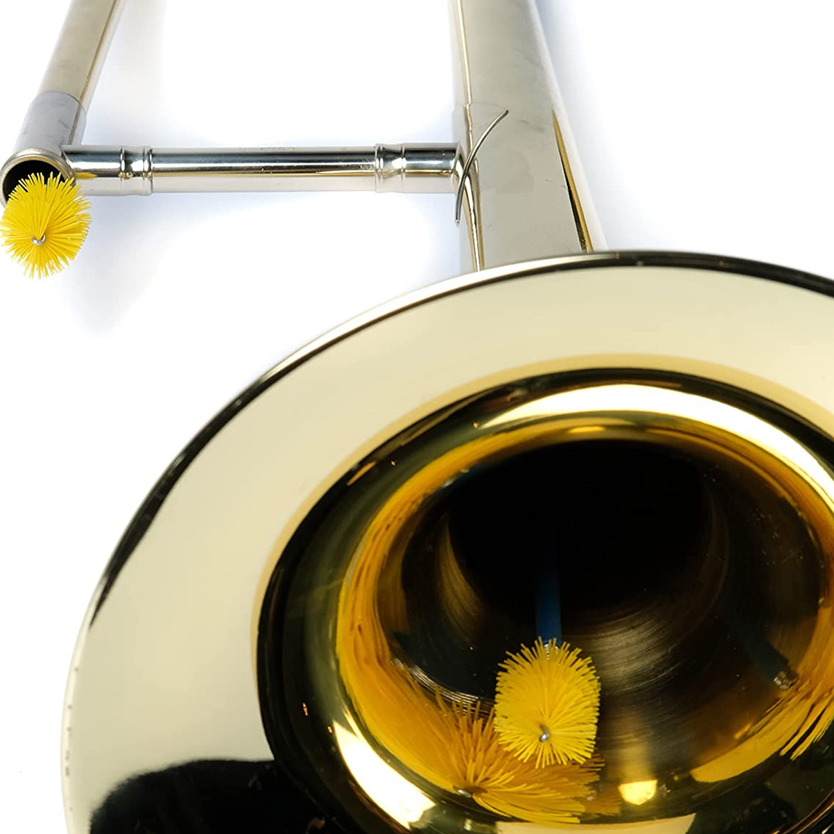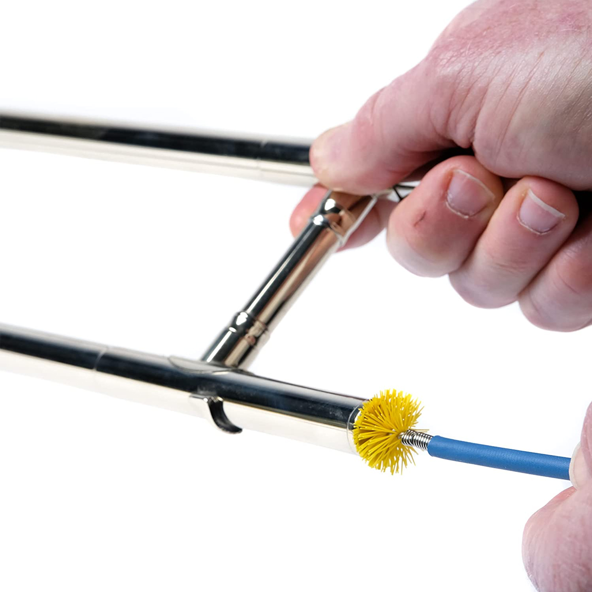 Cepillo para trombón, innovador diseño de serpiente flexible y sin enredos, se desenrolla fácilmente para facilitar su uso, cuenta con un forro impermeable especial que no contiene PVC ni vinilo, las fibras de calidad profesional son la resistencia a la tracción perfecta que necesitas para una limpieza eficaz de la suciedad y la saliva, 44″ pulgadas (112 cm) de largo, núcleo de acero inoxidable para mayor resistencia y durabilidad, recubierto con nuestro revestimiento impermeable para proteger el acabado de tu instrumento, viene con una práctica bolsa de almacenamiento con cierre hecha con material PET/PE reciclable.