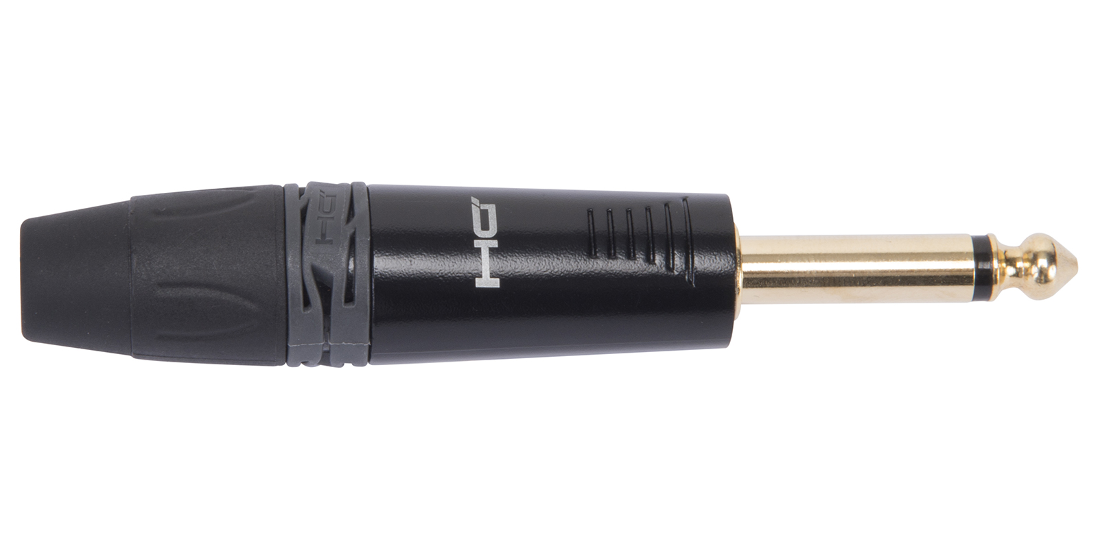 Conector profesional jack mono de 6.3 mm, cuerpo ergonómico y resistente fabricado con aleación de zinc diecast y punta de latón con placa dorada. Carcasa trasera de nylon reforzado y funda de PVC para proporcionar una excelente protección del cable. Alivio de tensión interno especial para un apriete simple y óptimo. Terminado en color negro.