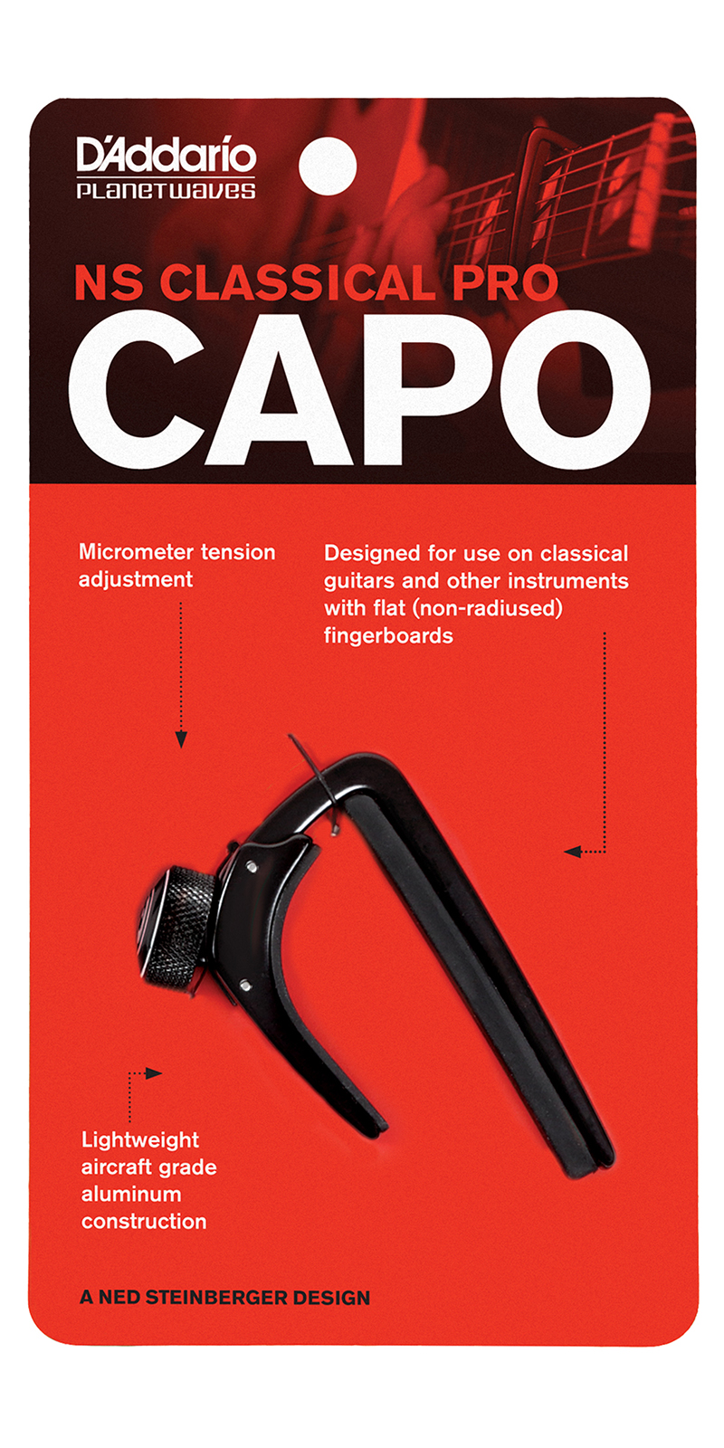 Con el capodastro PW-CP-04 de Planet Wave tendrás las distintas técnicas y voces de coro disponibles en diferentes claves, la misma pieza puede sonar diferente si es tocada en Re o en Do con la cejilla en el segundo traste. Adicionalmente el timbre de las cuerdas de una guitarra cambia cuando se reduce la longitud de la escala, recordando de otros instrumentos como la mandolina. Así pues, el uso del capodastro es un asunto tanto de expresión artística como de experiencia técnica, que tu capdastro de Planet Wave resolverá de manera muy fácil y practica. Para guitarras clásicas también disponibles para guitarras eléctricas y acústicas.