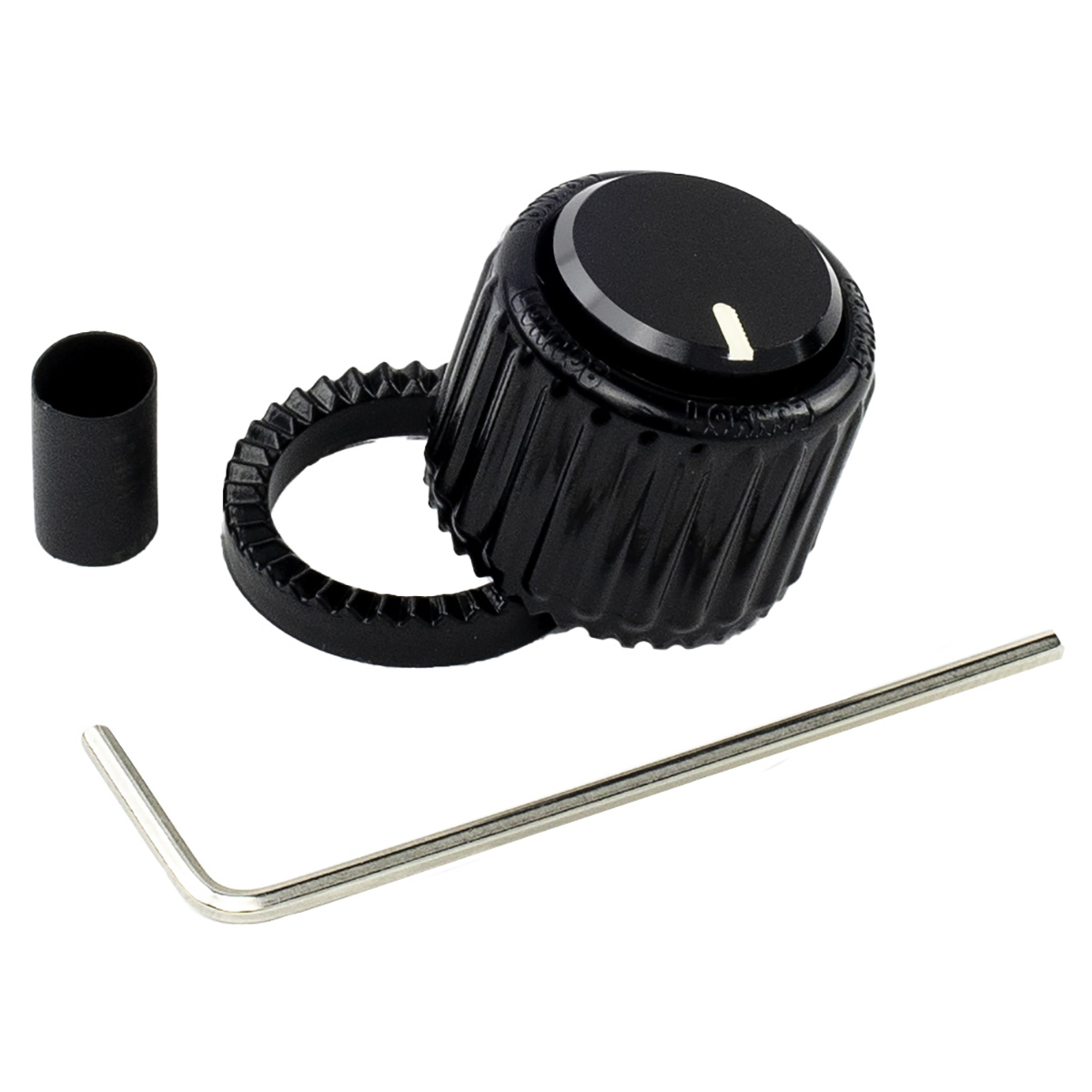 Perilla Loknob con seguro, una vez en su lugar simplemente gire la perilla para marcar el sonido que necesitas, se adapta a la mayoría de los amplificadores, pedales de efectos, instrumentos y equipo para estudio o en vivo, grande, color negro.