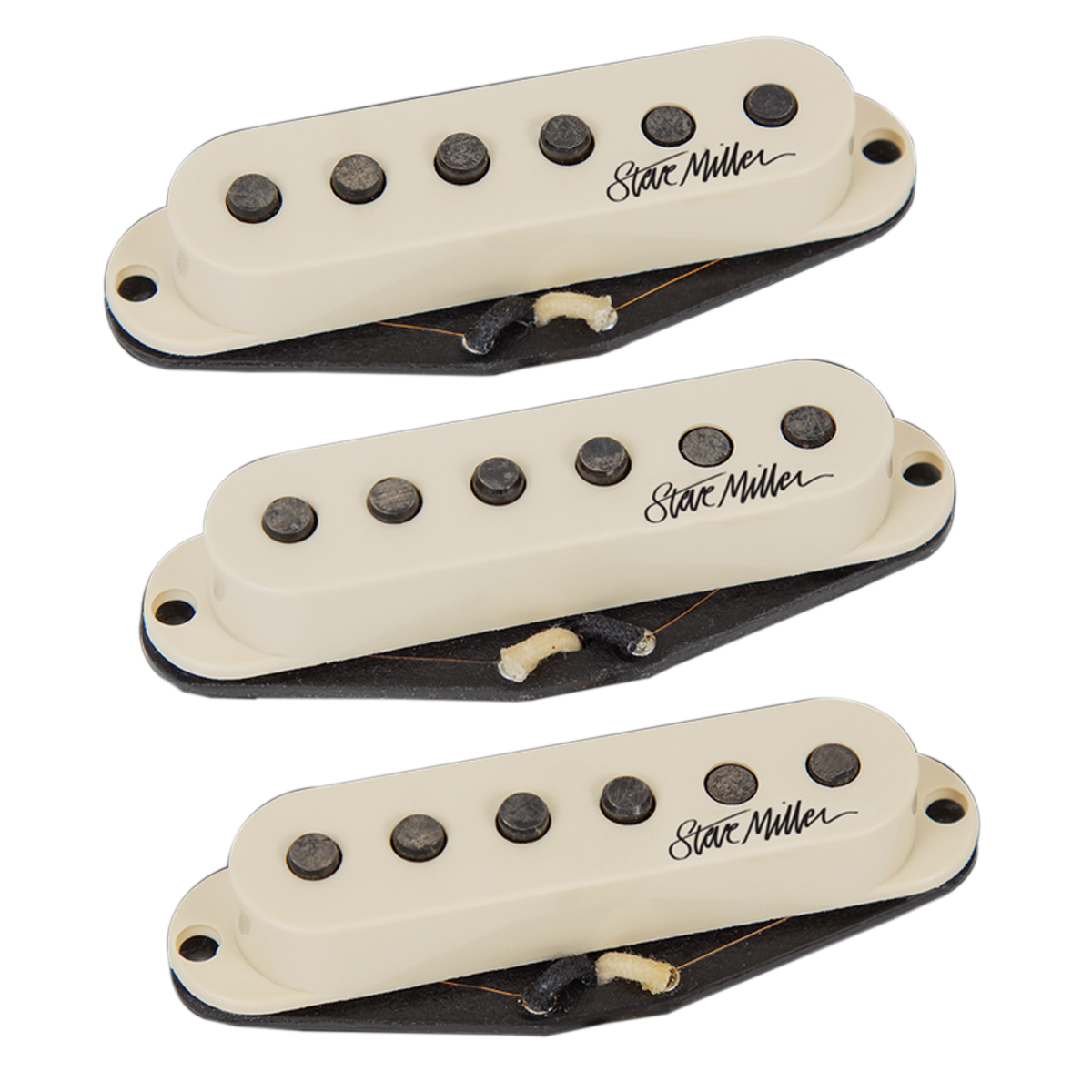 Set de pastillas conmemorativas de Steve Miller The Joker Maricela “MJ” Juárez. Con imanes de Puente – Alnico 2,Medio – Alnico 2, Mástil – Alnico 2. Resistencia CC de Puente – 6.10k – 6.19k, Medio – 5.95k – 6.05k, Cuello – 5.95k – 6.05k y Tipo de cable. Push-Back de tela. Las tres pastillas de bobina simple están enrolladas para una salida vintage alrededor de imanes Alnico 2, con la firma de Steve impresa en la cubierta y la icónica máscara Joker en la placa inferior. Este juego es imprescindible para los fanáticos de Steve Miller y los jugadores de Strat ™ por igual.