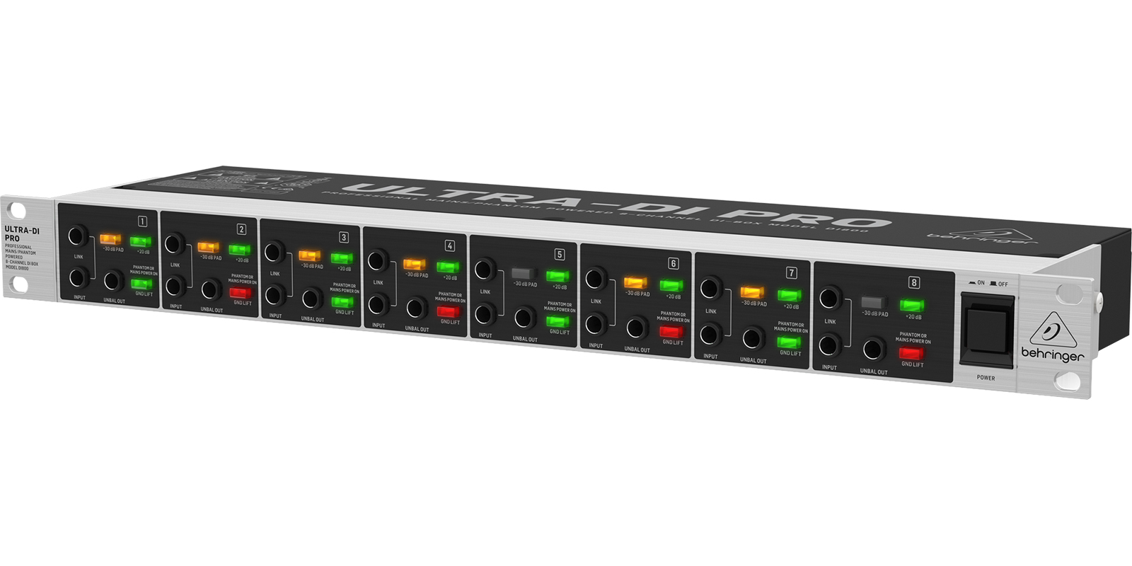 ULTRA_DI PRO es una caja directa profesional activa mains/phantom de 8 canales. Si necesitas una unidad DI montable en rack con suficientes entradas para acomodar a todos en el estudio o escenario, entonces necesitas conectar la caja DI800.
